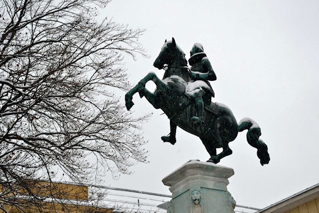 | Эркгерцог Леопольд V был правителем Тироля с 1619 по 1632 годы. Еще при жизни принца был установлен первый в Альпах памятник, где всадник сидит на вставшем на дыбы коне, причем вся эта композиция находится в центре большого круглого фонтана. |