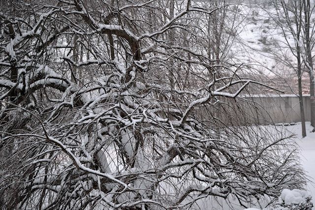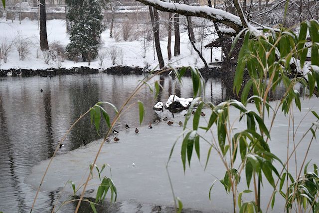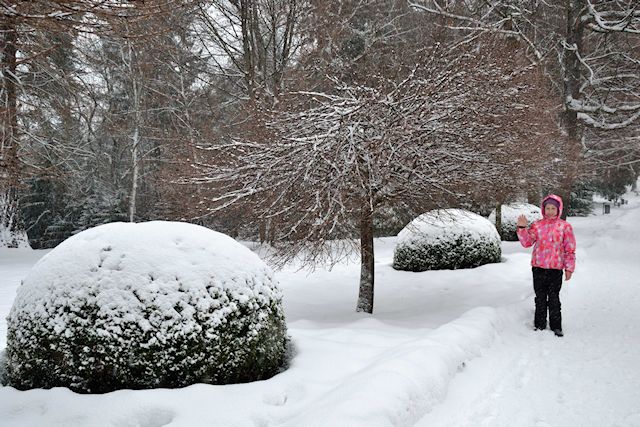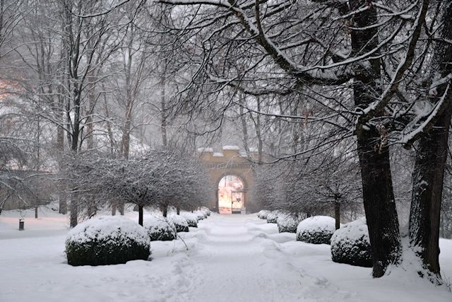 | ...тропинка приводит в парк, красиво смотрящийся под шапками снега |