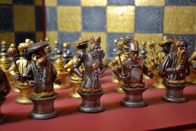 | В соседнем строении расположена коллекция всяческих редкостей и диковинок, собранная королями, обитавшими в этом замке, типа кунсткамеры. Например, эта деревянная фигурка... |