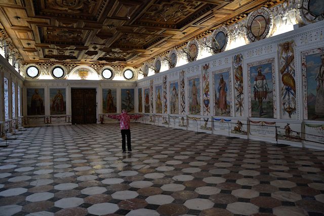 | Чтобы было удобнее рассматривать роспись на потолке, посередине этого зала стоит зеркальный столик... |
