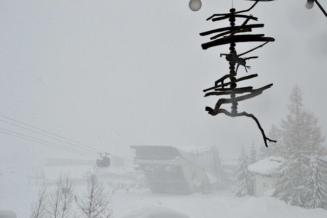 | В начале января в Европе бушевал ураган, задевая Альпы своими хвостами, отчего в долинах крупными хлопьями валил снег, а наверху ветер залеплял этим снегом очки, задувал под одежду, в общем катание получалось не комфортным |