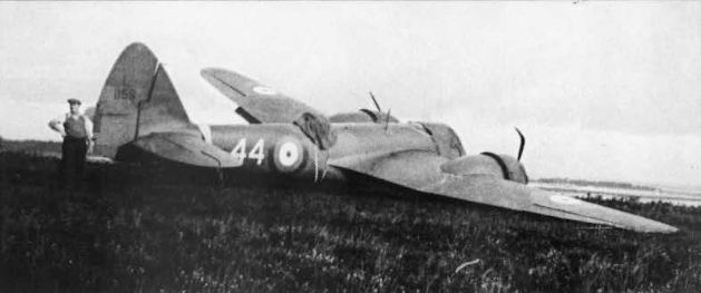 Регистрационный номер: L1159 Bristol Blenheim I L1159 of 44 Sqn, following a forced landing at Bournemouth. Damage was slight and the Blenheim later served with Nos 2 and 54 OTU and 12 PAFU before being relegated to an instructional airframe (2638M) in July 1941.
