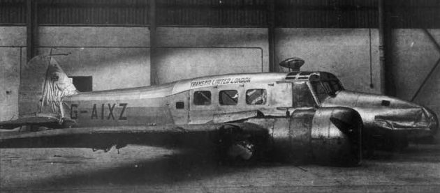 Регистрационный номер: G-AIXZ Transair’s Avro Anson Mk I G-AIXZ looking rather sorry for itself. This photograph was probably taken in February 1951 when the aircraft was damaged beyond repair at Jersey.