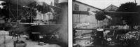 These two photographs show the 1913 Olympia Bat-Boat at Folly on the Medina after being blown over by a gale in mid-March of that year. The forward elevator, the added struts between the hull and the upper ends of the central interplane struts, and the hull's single step are clearly seen.