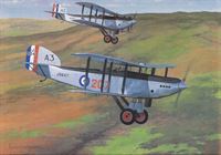 Регистрационный номер: J9647, S1202 KEITH WOODCOCK’S painting depicts a scene which, although chronologically impossible, provides a comparison between colour schemes at different periods. In the foreground is IIIF J9647 of 207 Sqn in 1931; accompanying it is another 207 Sqn machine, S1202, as it appeared in 1928 - note the earlier fin and the reversed rudder stripes.