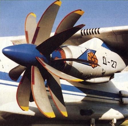 This Ilyushin Il-76 is a testbed for the D-27 propfan.