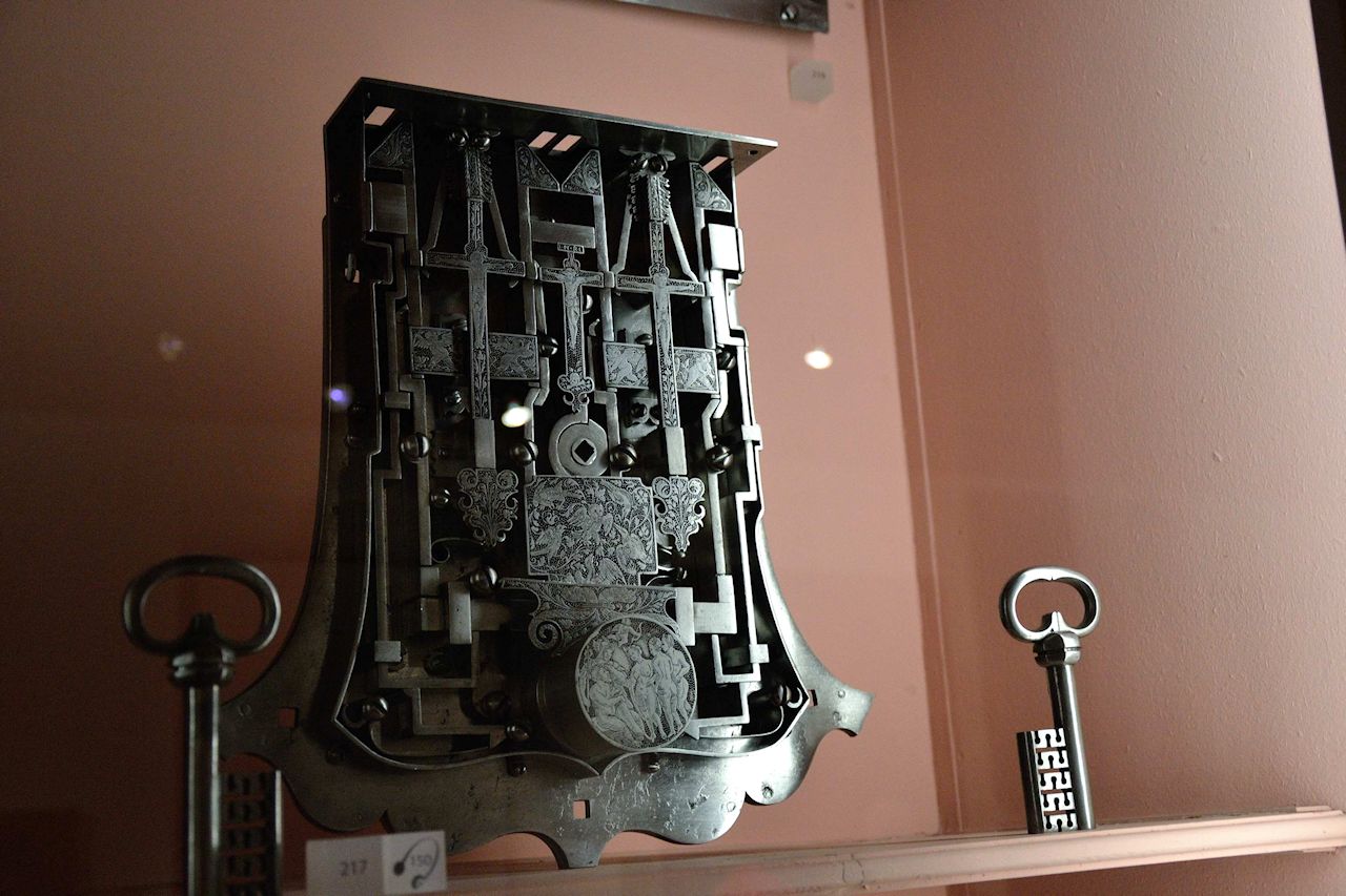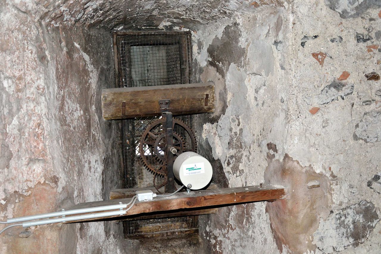 | Красивые старинные часы, оказалось, работают от электричества, а оригинальный механизм стоял внизу в качестве музейного экспоната |