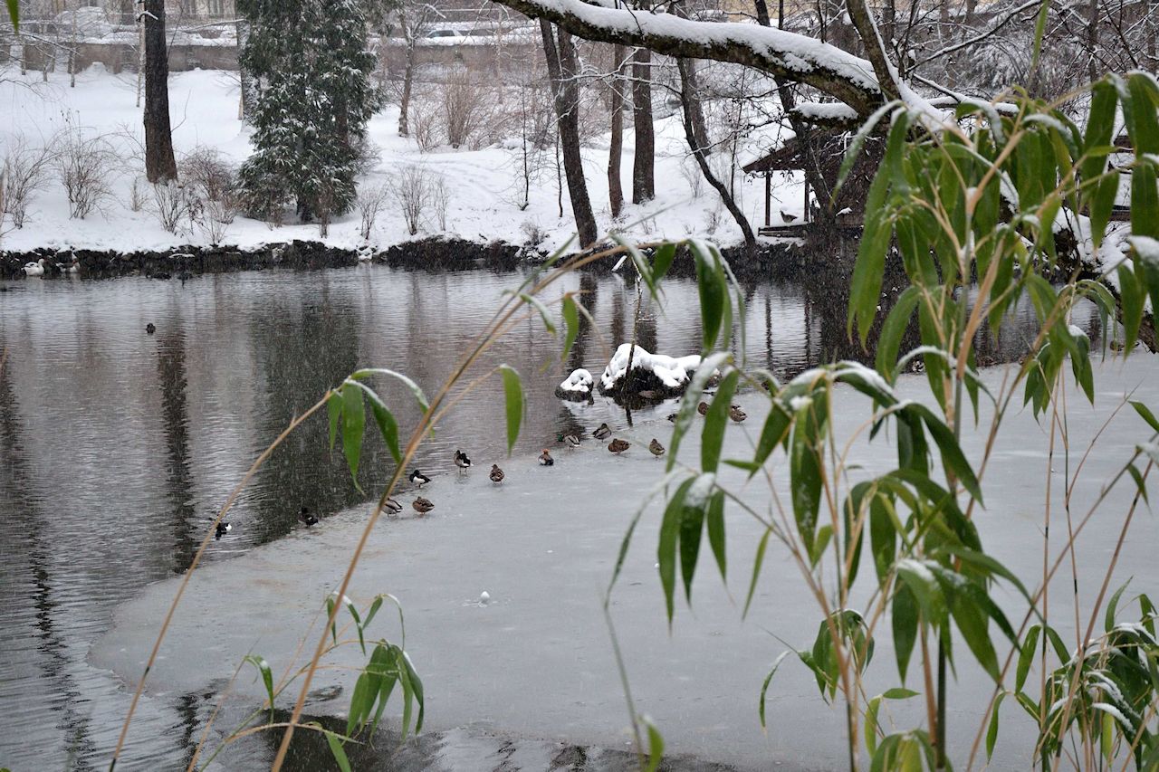 | ...тропинка приводит в парк, красиво смотрящийся под шапками снега |
