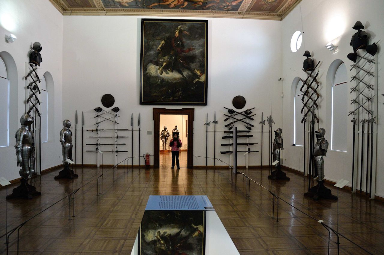 | Замок состоит из нескольких строений. В первом находятся коллекции оружия, а главное, доспехов. На этом снимке - турнирные доспехи со специальными "держалками" для копья, так как копья, которыми сражались на турнирах больше были похожи на немаленькие такие бревна... |