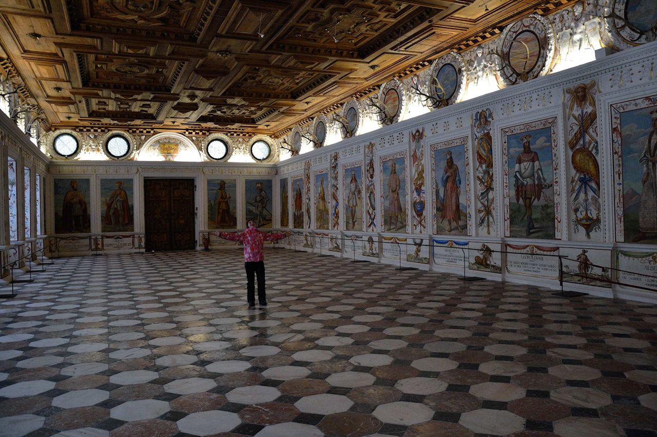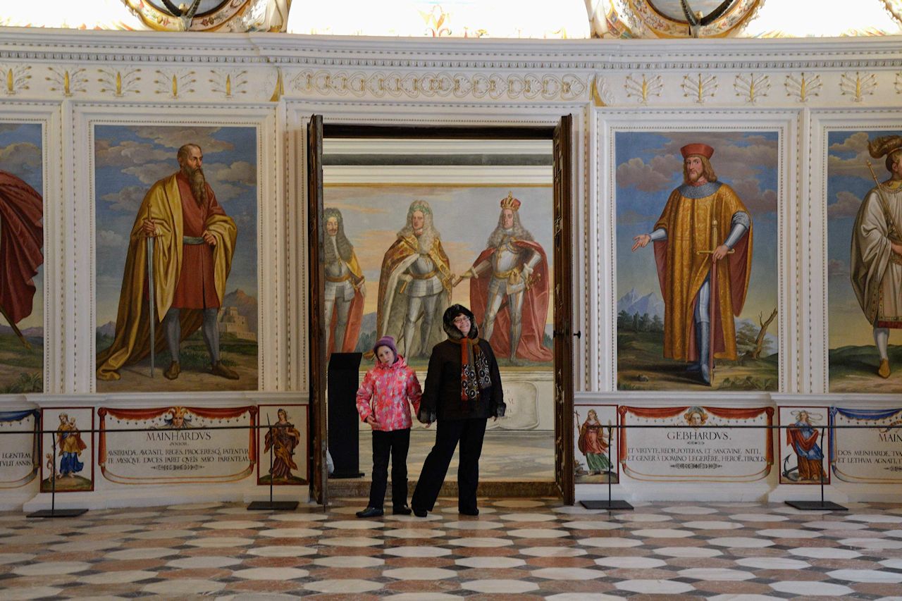 | Портретный зал. Над каждым портретом знаменитого предка - рога... |