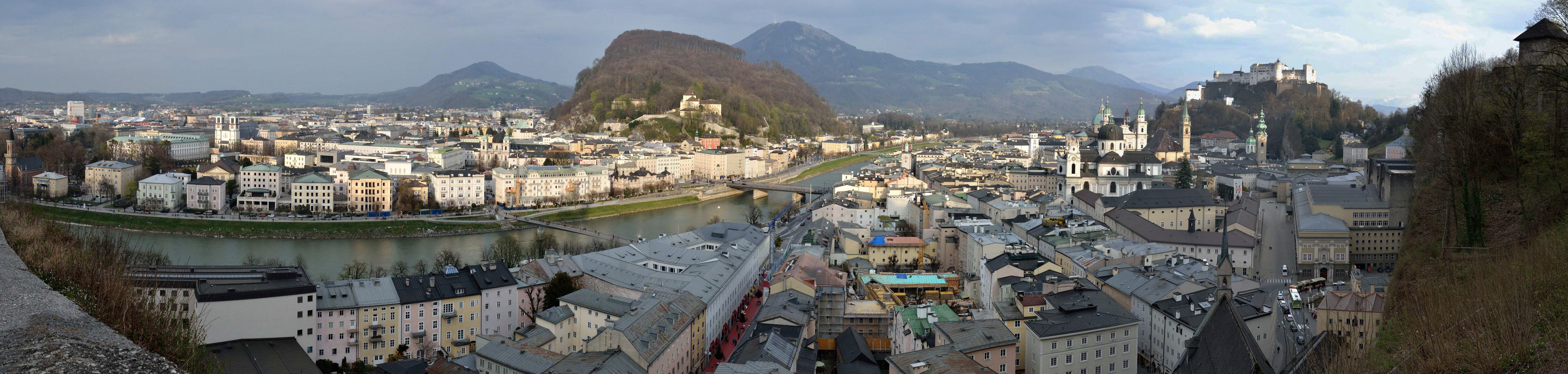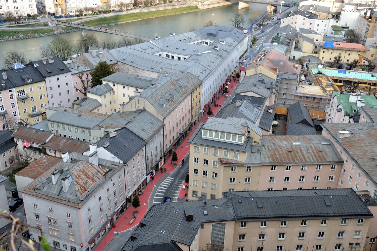 | Старинная часть Зальцбурга зажата между рекой Зальцах и горной грядой. На горе стоит замок, в горе множество тоннелей, автомобильных и пешеходных. Почти у самого выхода из тоннеля Зигмундстор с "той" стороны находится Star Inn Hotel, в котором мы остановились. Неплохой отель. |