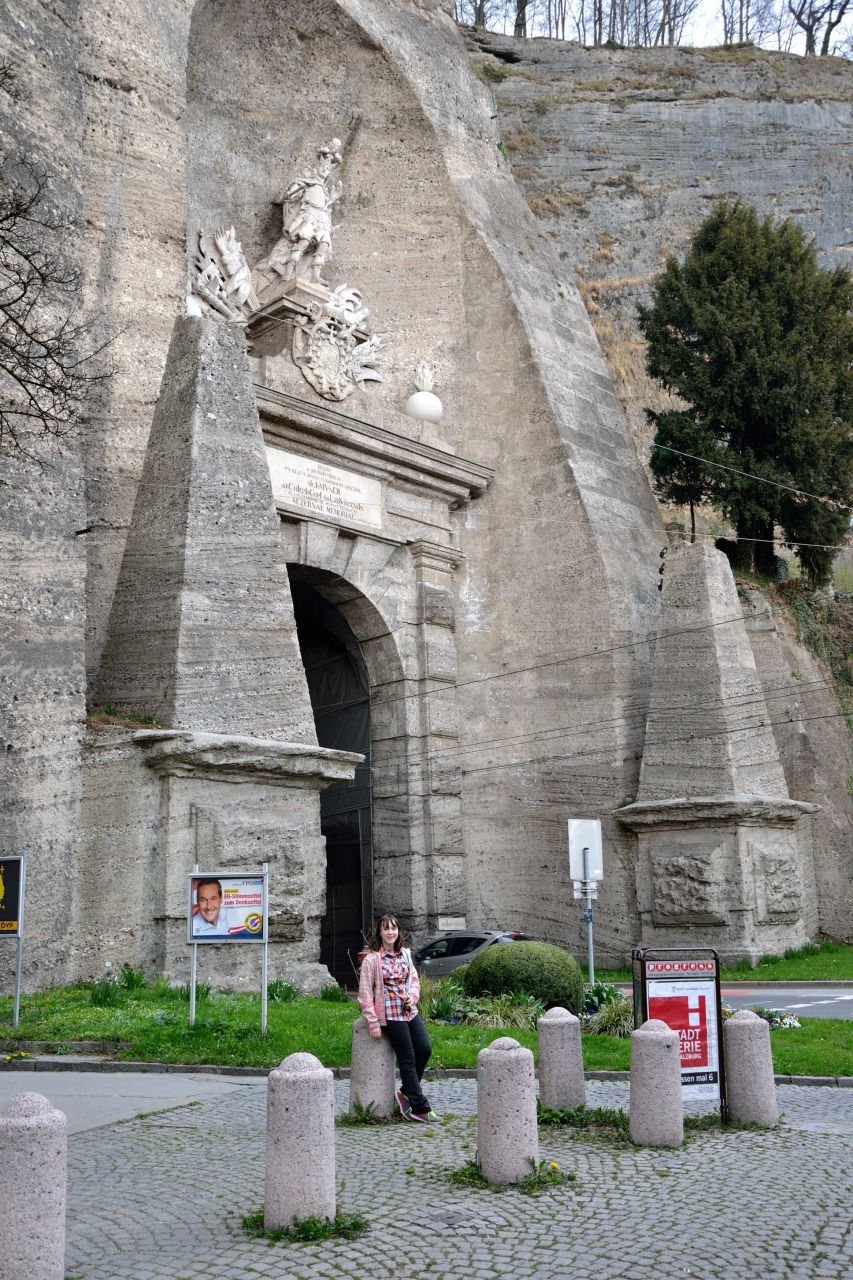 | Самый большой тоннель, Зигмундстор, был прорыт в 1764-1767 годах, на входе установлена статуя Святого Сигизмунда в античных доспехах |