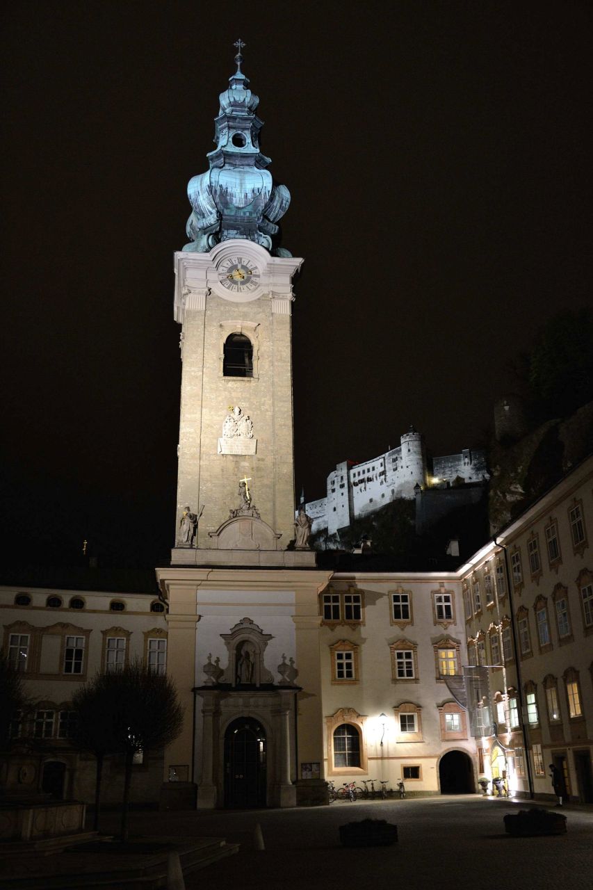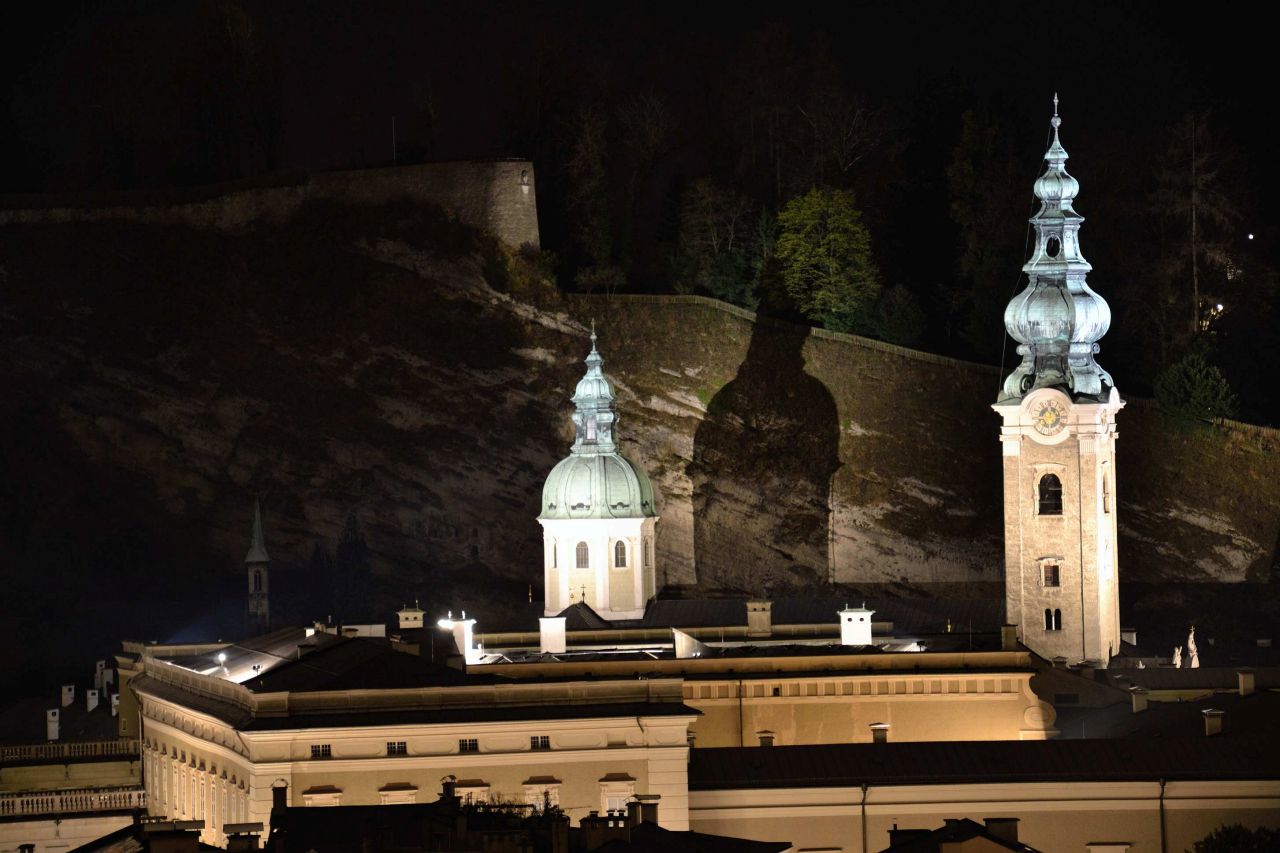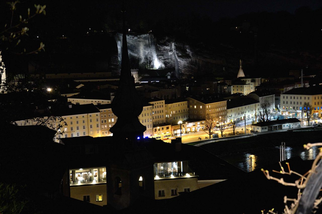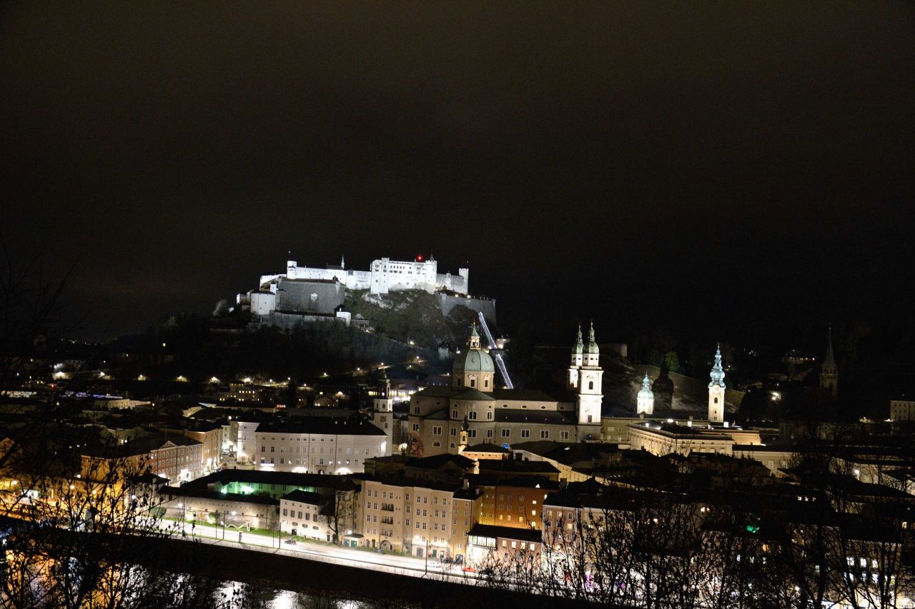 | У стен монастыря смотровая площадка, с которой открывается отличный вид на ночной Зальцбург |