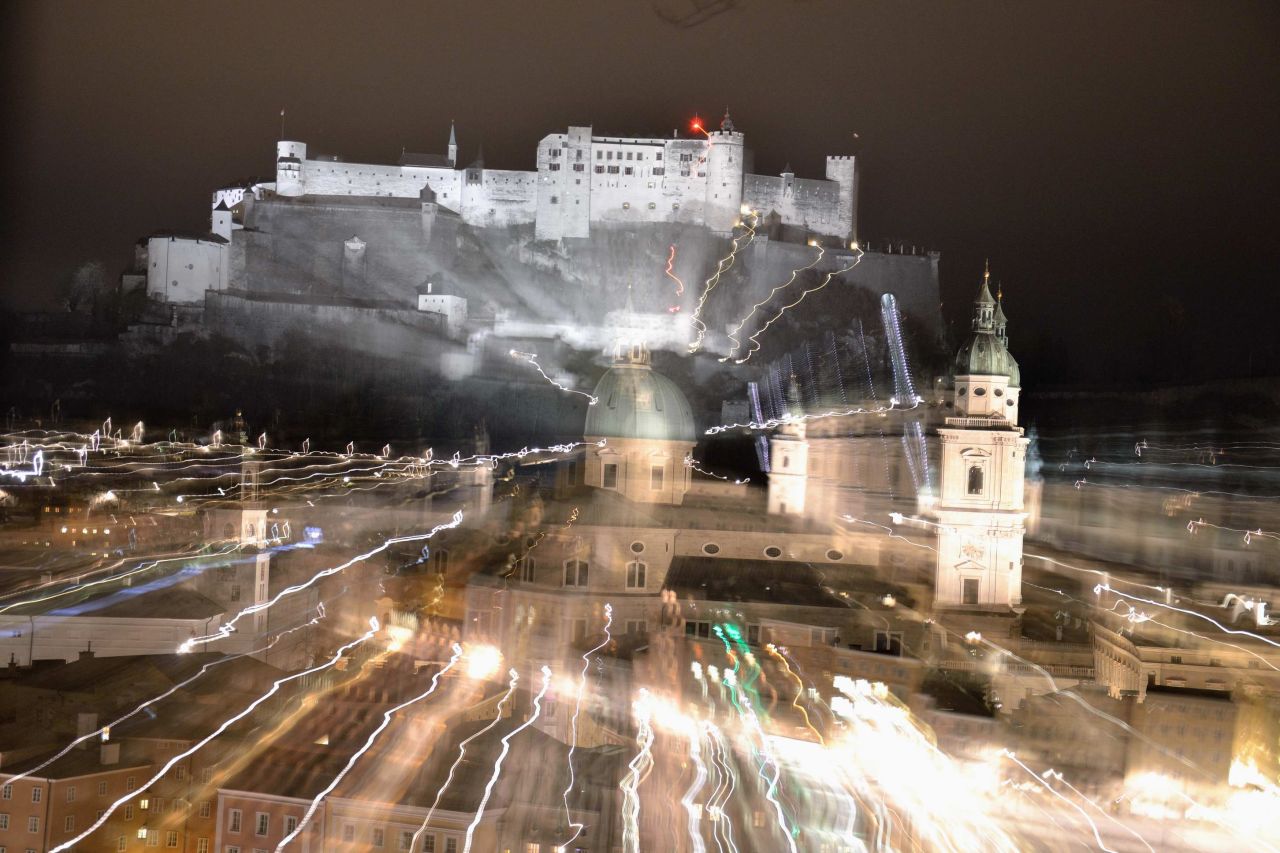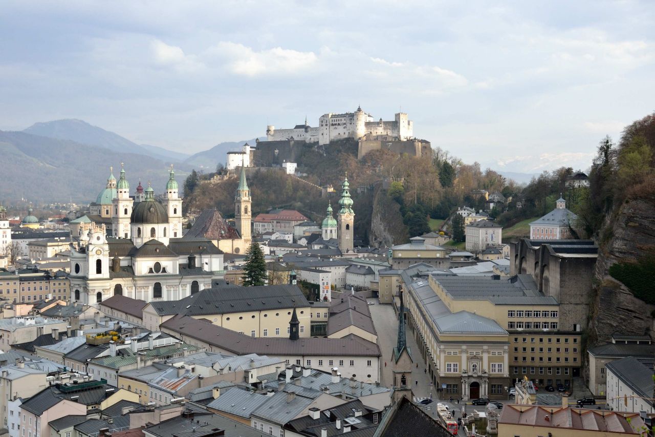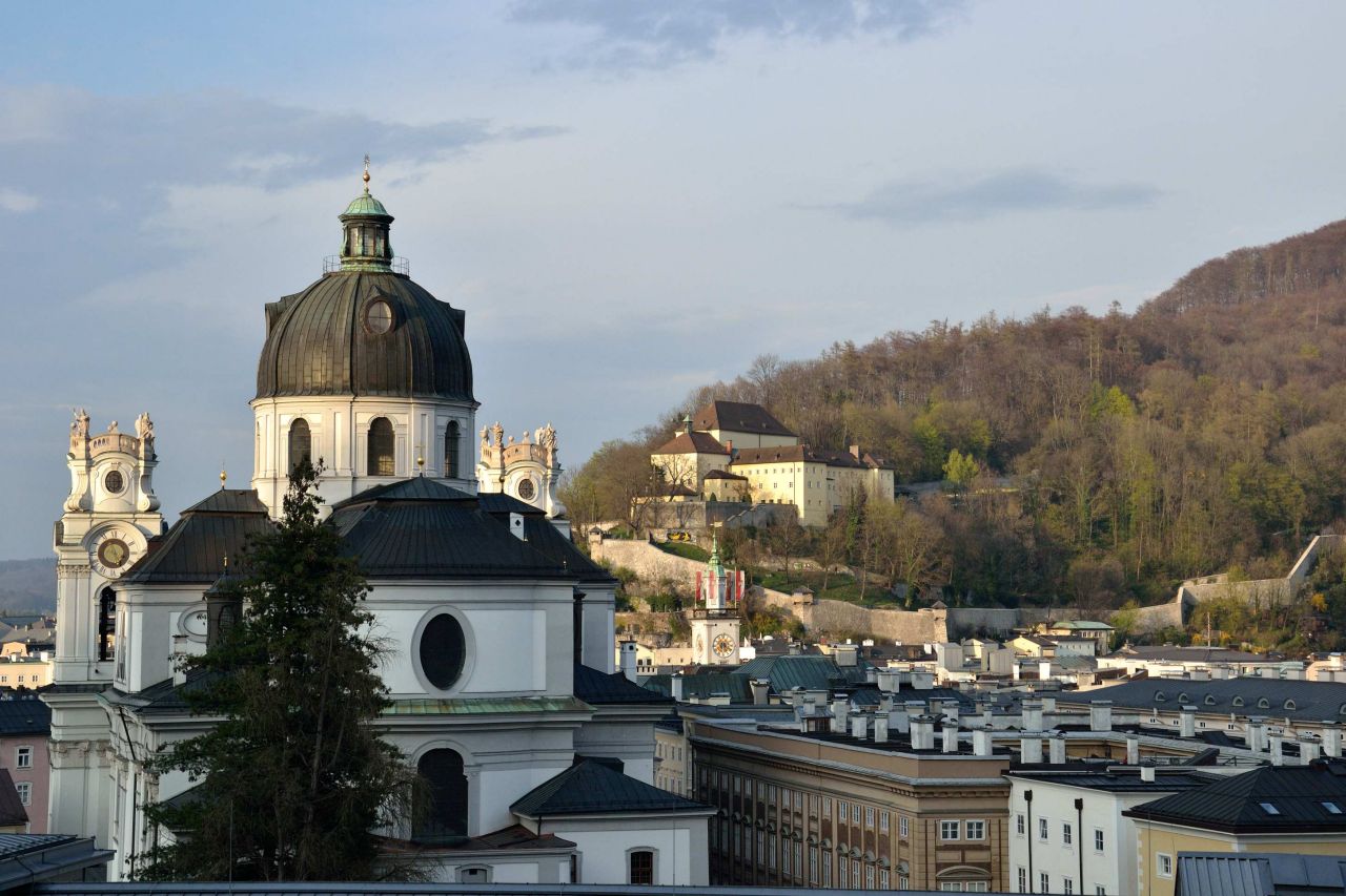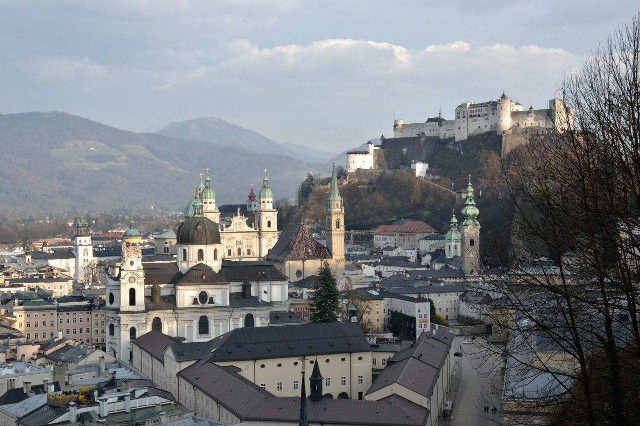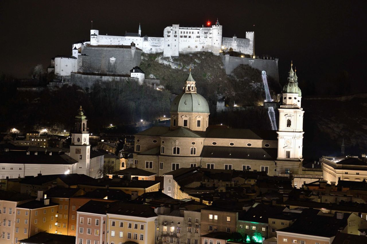 | У стен монастыря смотровая площадка, с которой открывается отличный вид на ночной Зальцбург |