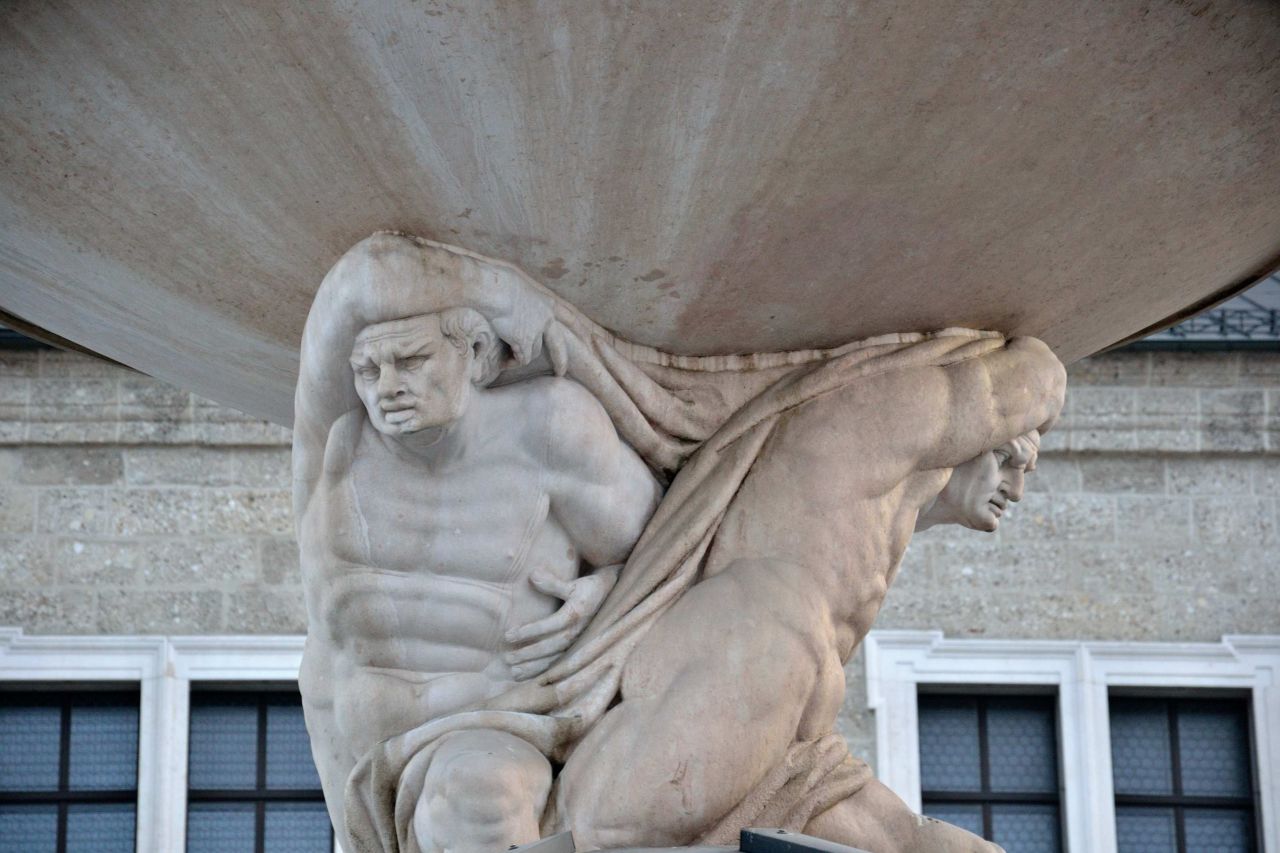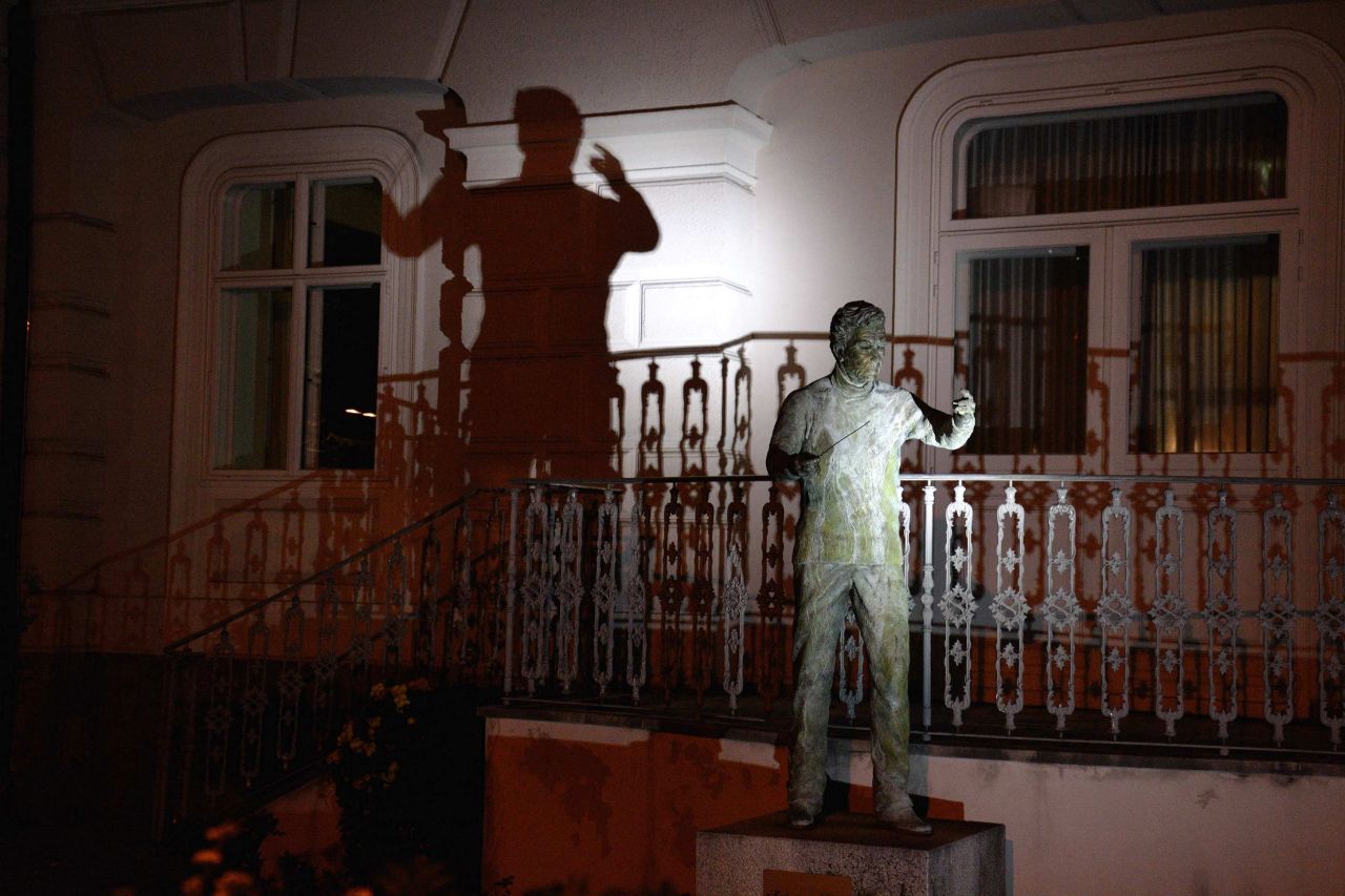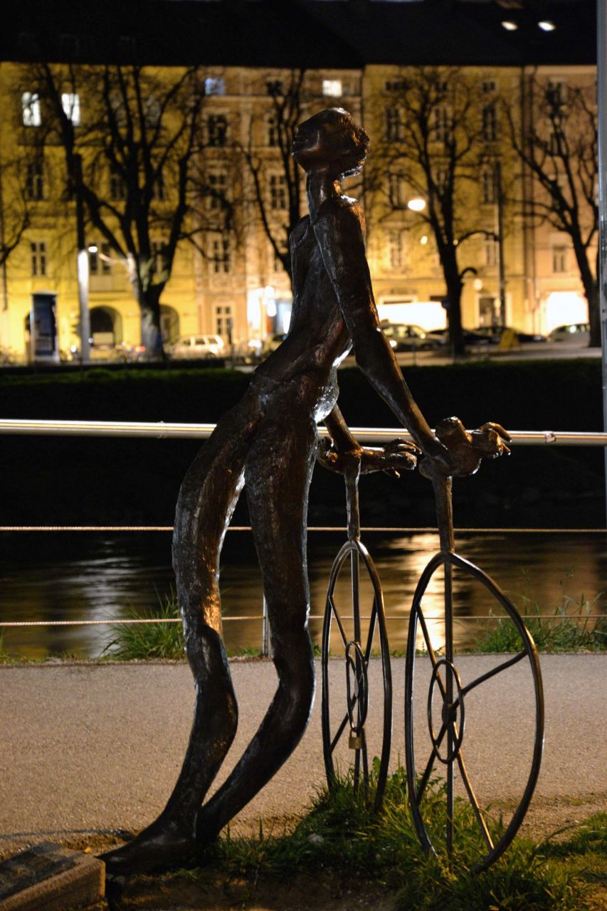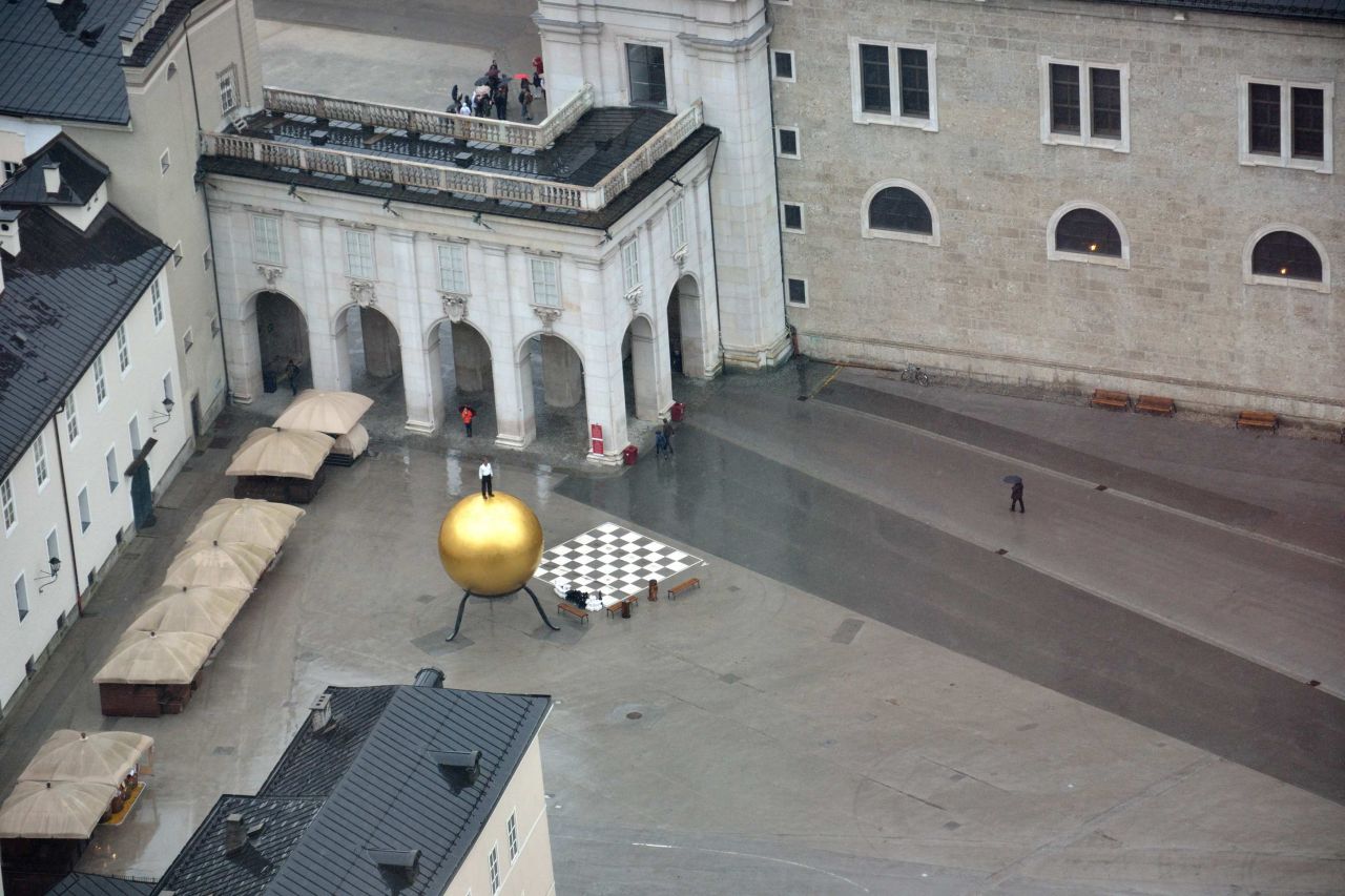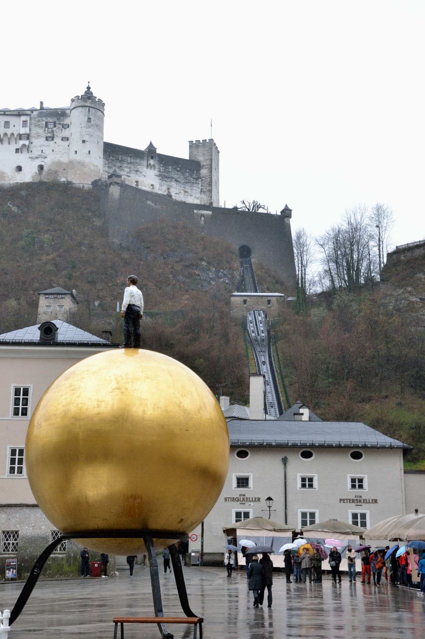 | Смотрите, кто-то залез на шар... Нет, это памятник! Памятник создателю конфет "Mozartkugel" |