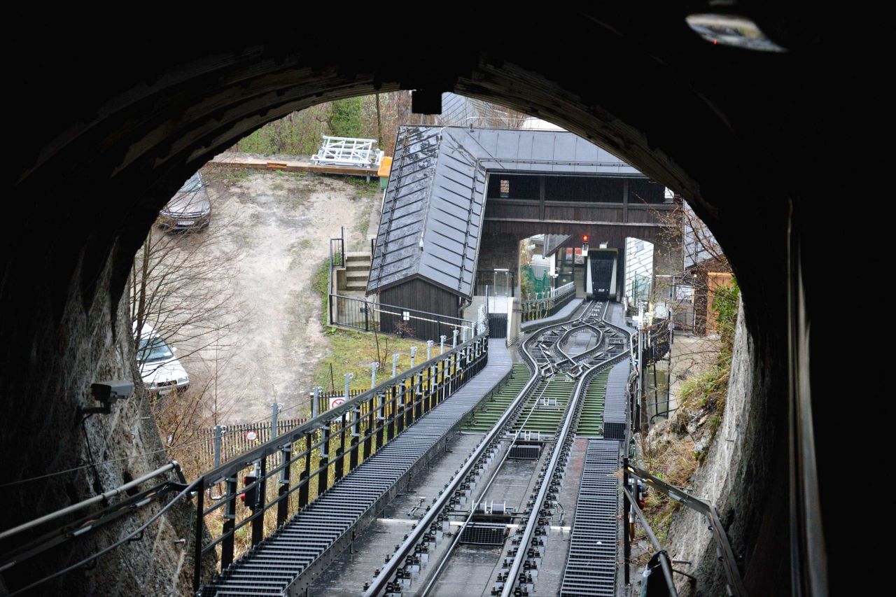 | Яркая наклонная линия, ведущая из города к замку - это фуникулер |