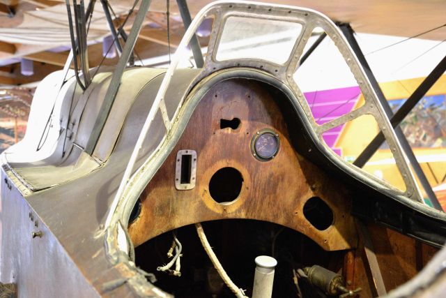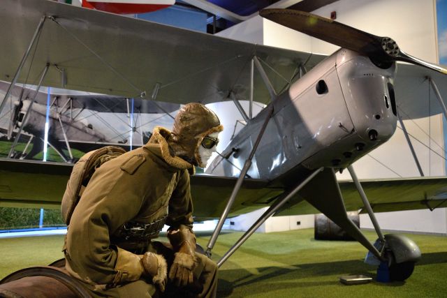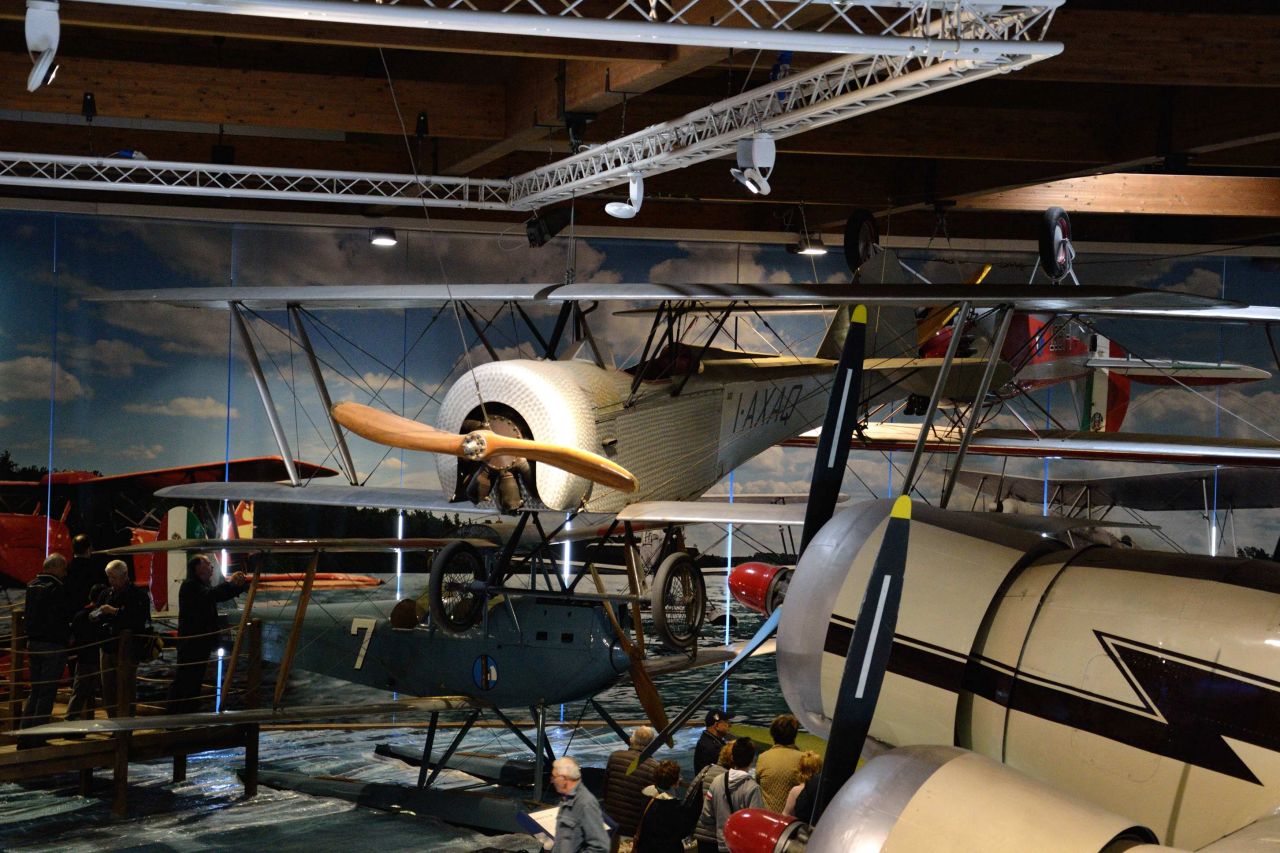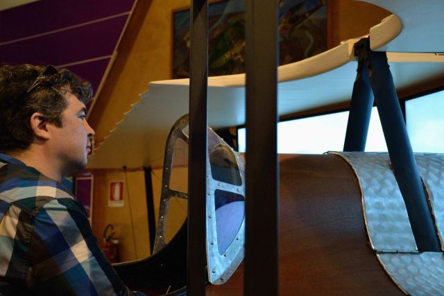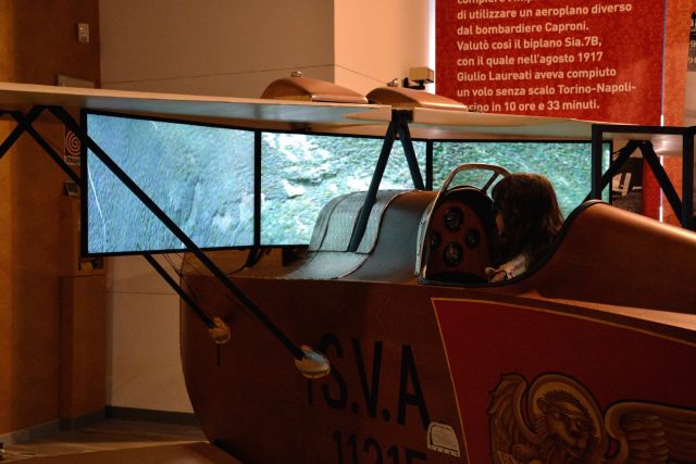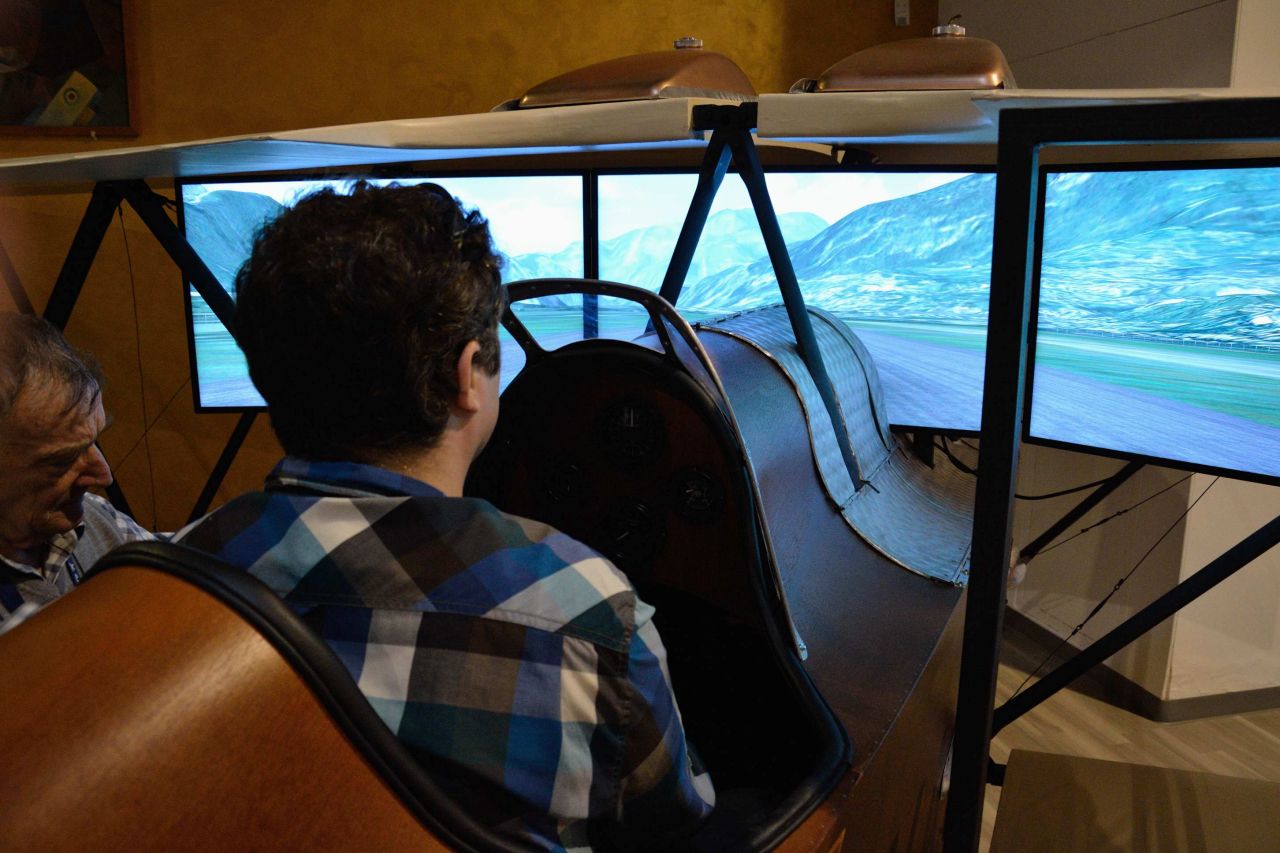| В углу зала стоял Ansaldo SVA.5, подключенный к компьютеру. Можно было двигать его рычаги и педали, управляя компьютерной симуляцией |