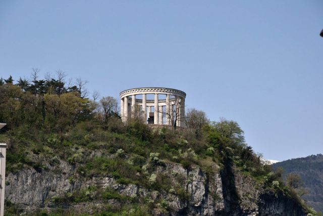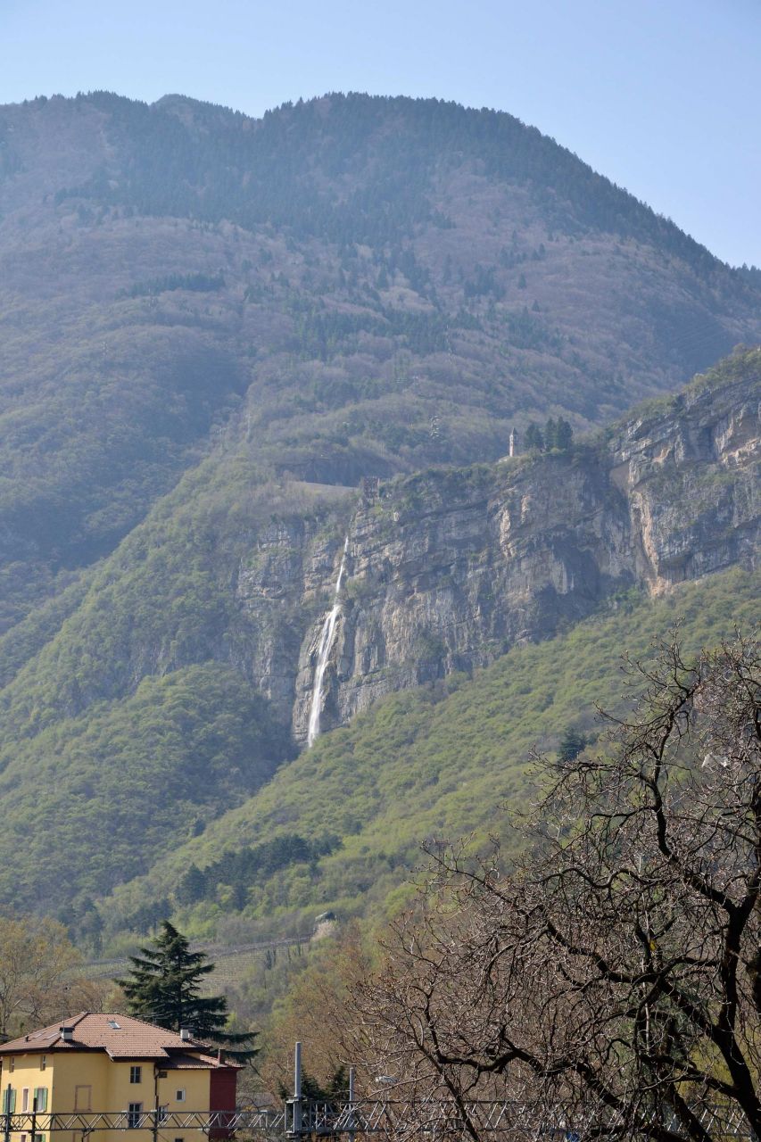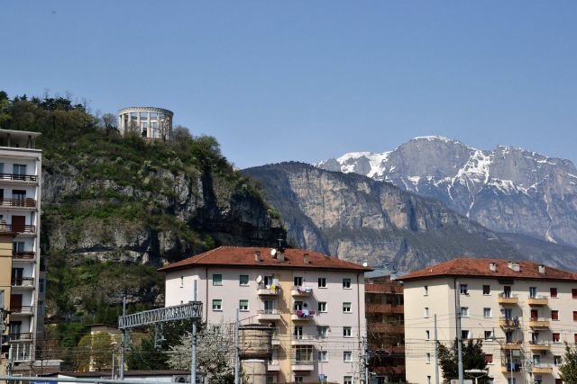 | На ближайшем холме видно странное сооружение - это мавзолей героя 1-й мировой войны Чезаре Баттисти, схваченного и казненного в этих местах австрийцами |