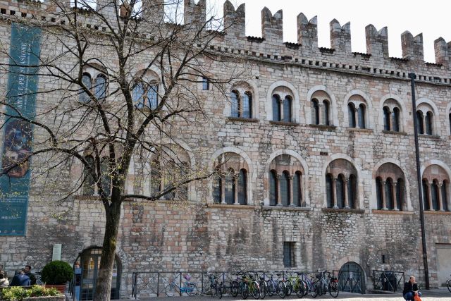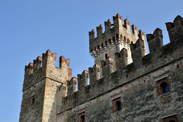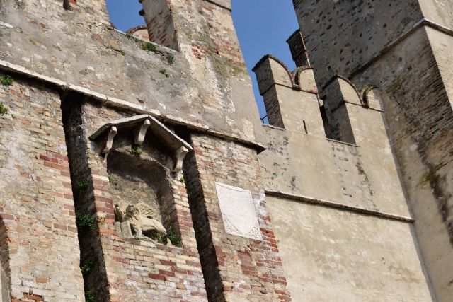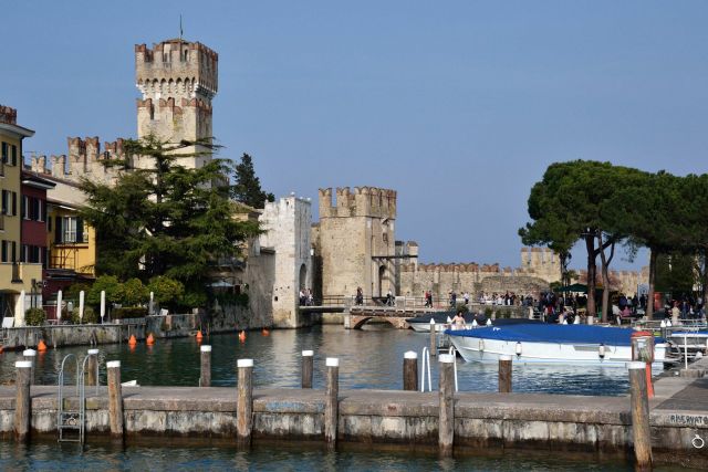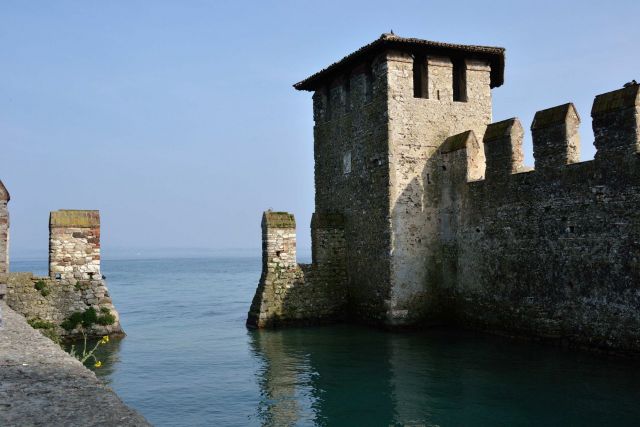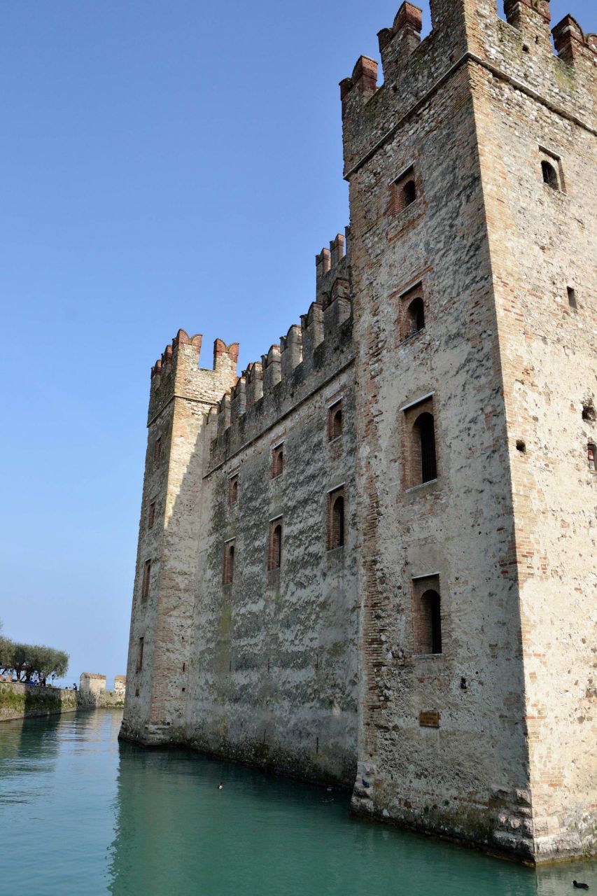 | Замок Скалигеров на берегу озера (XIII век), некогда служивший военным портом веронской флотилии. К сожалению, вход в него был закрыт (хотя по висящему на нем расписанию должен быть открытым) |