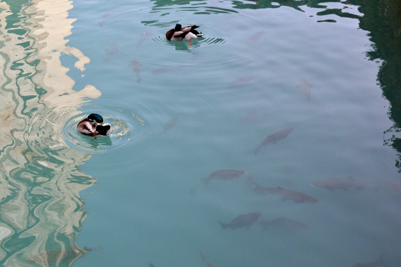 | Во рву вокруг замка плавали большие рыбины и утки |