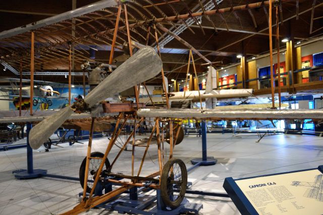 По пути из итальянских аэропортов (Верона, Брешия) в Доломиты ваше транспортное средство проезжает мимо города Тренто, зажатого с двух сторон горами, стоящего на реке Адидже (той же самой, на которой стоит Верона). Мало кто сворачивает с автострады и заезжает в город - но, возможно, напрасно. Это довольно древний город, его завоевывали еще римляне в I веке до н.э., и там есть интересные достопримечательности. Меня же этот город привлекал тем, что там находится авиамузей им. Капрони - самого известного итальянского авиаконструктора, который именно там строил свои первые самолеты. (В недавно вышедшем японском мультфильме "Ветер крепчает" именно Капрони и его конструкции вдохновляли главного героя).
