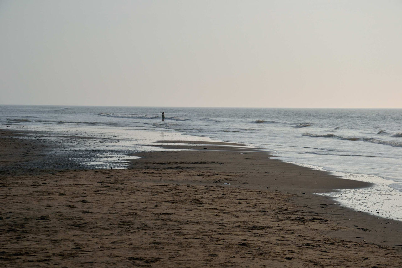 | Пляж. Никто не купается, только ёжится и кутается в куртки и плащи... |