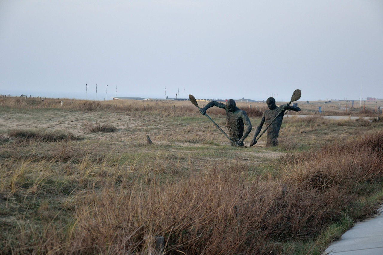 | Несмотря на солнце, было довольно холодно от сильного ветра с моря, и в куртках и капюшонах мы чем-то были похожи на строителей этих каналов |