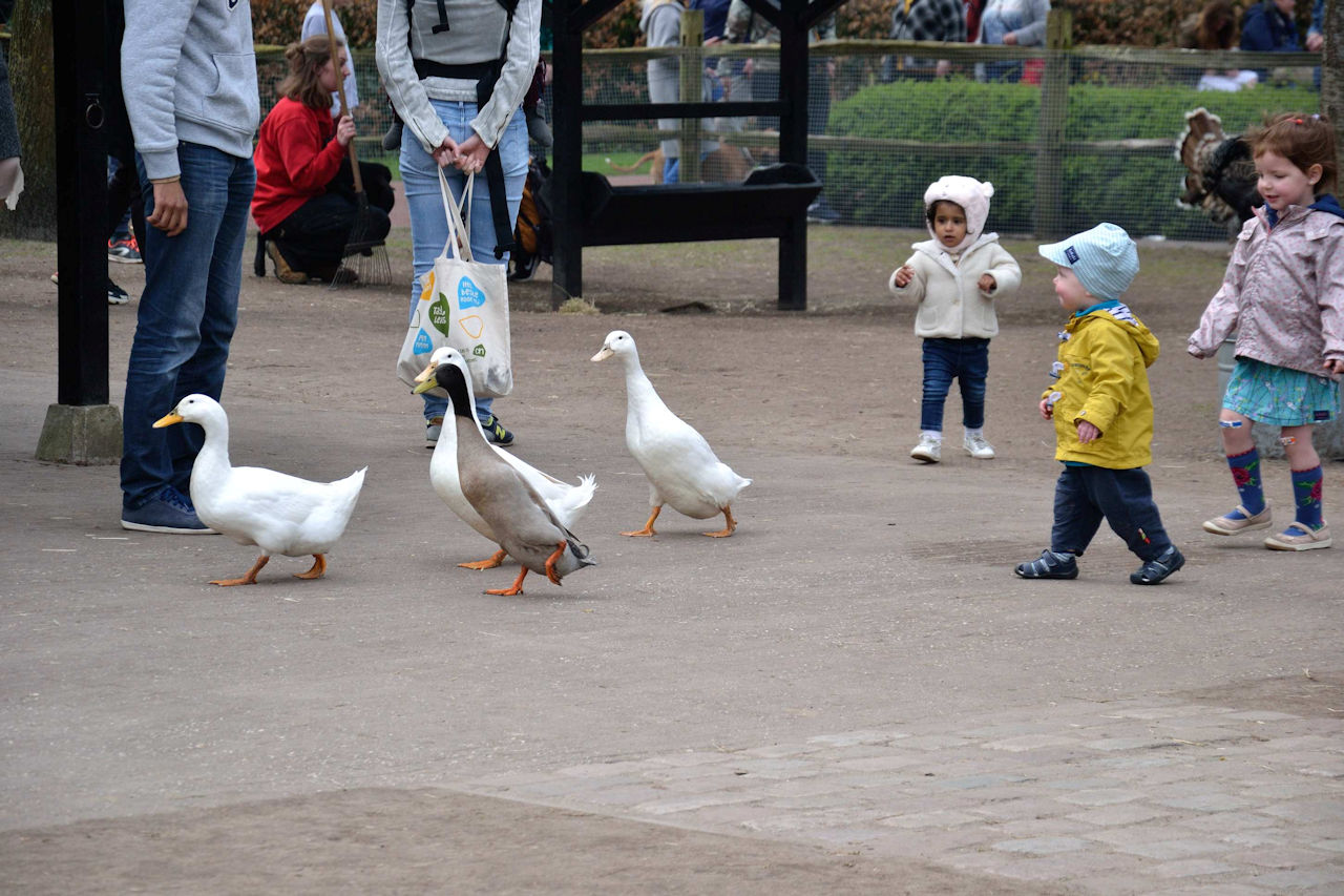 | Зачем-то на территории парка цветов устроили мини-зоопарк, в котором дети гоняют гусей... |