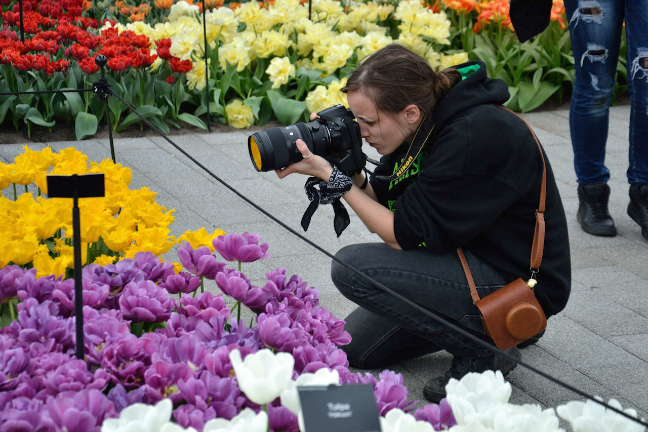 | Фотографировать тюльпаны вскоре надоедает, и находится новое развлечение: фотографировать людей |