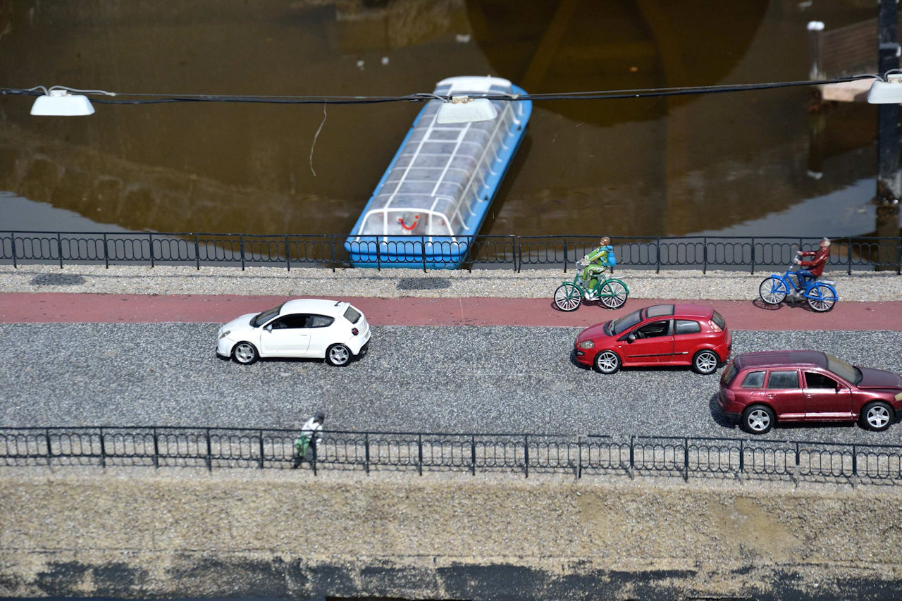| "Интересно, это везде так в Голландии?" - думали мы стоя в пробке, и фотографируя цаплю, вышагивающую вдоль канала. Пробка образовалась из-за разведенного для прохода баржи моста... |