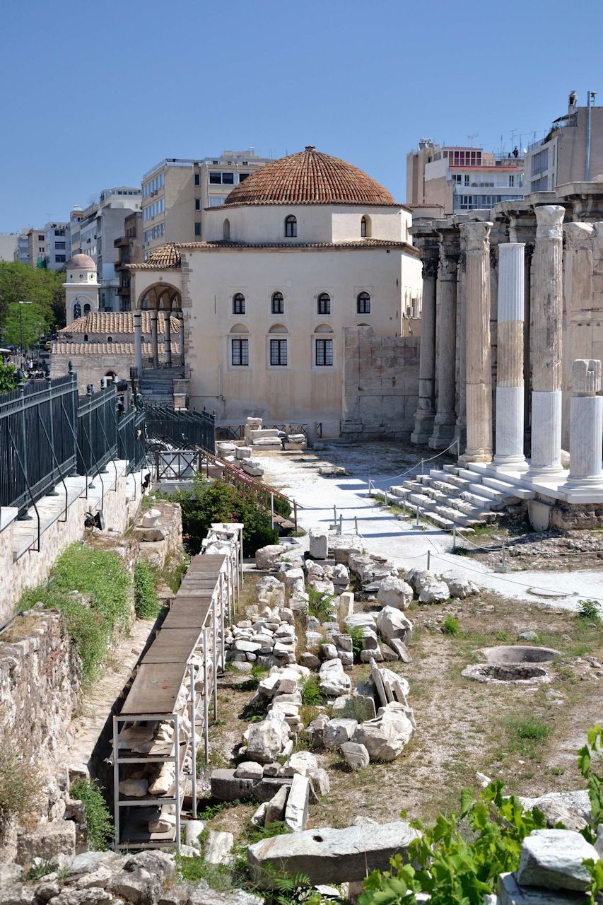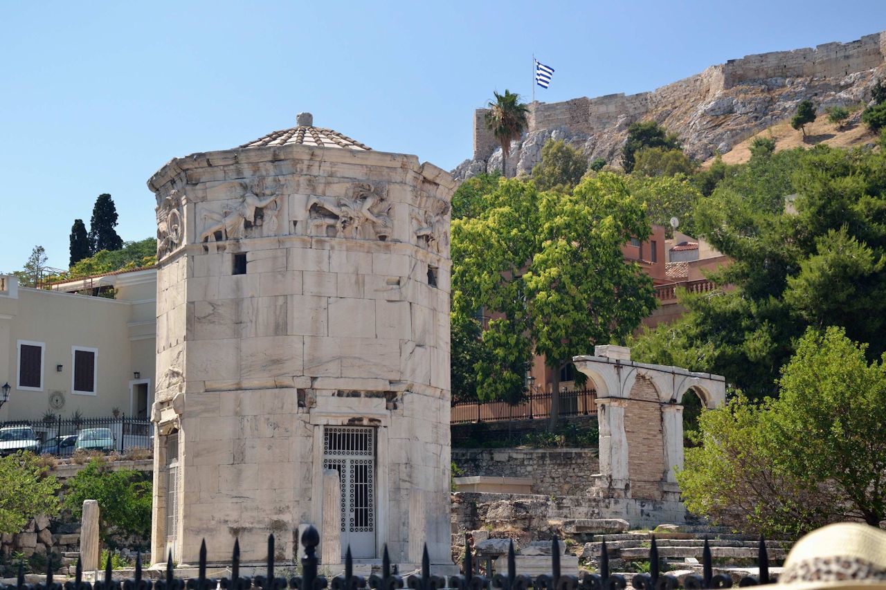| К сожалению, в этот день в Греции проходили выборы, и по этому случаю были закрыты все музеи (а что, хороший повод %-) и на Акрополь нас не пустили. Оставалось только обойти его вокруг, и посмотреть снаружи на древние сооружения, которые были не слишком далеко от заборов. Как, например, эта "башня ветров" |