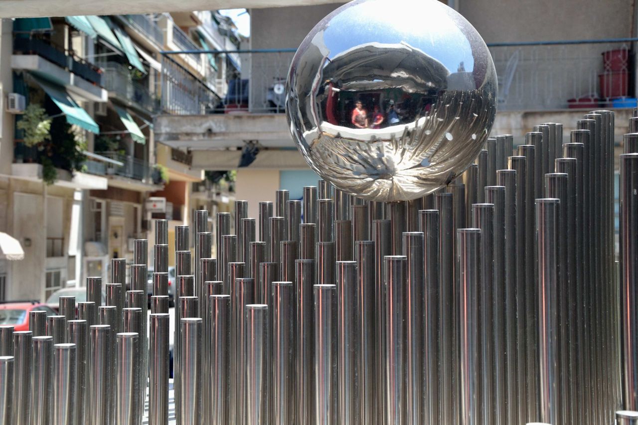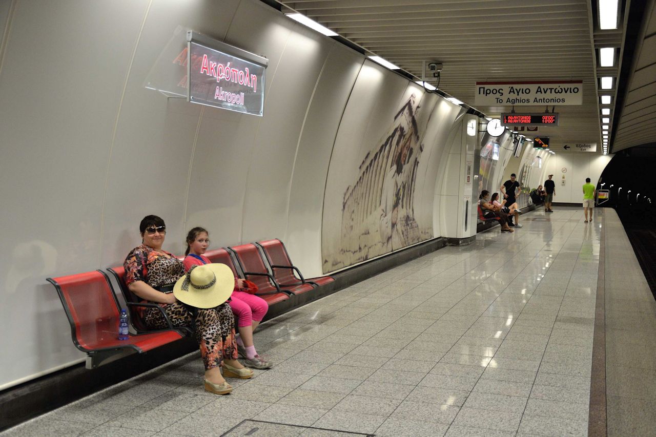 | Скульптурная композиция на нашей станции метро, Agios Nikolaos. Здесь метро проходило по поверхности, не отличаясь от электричек. |