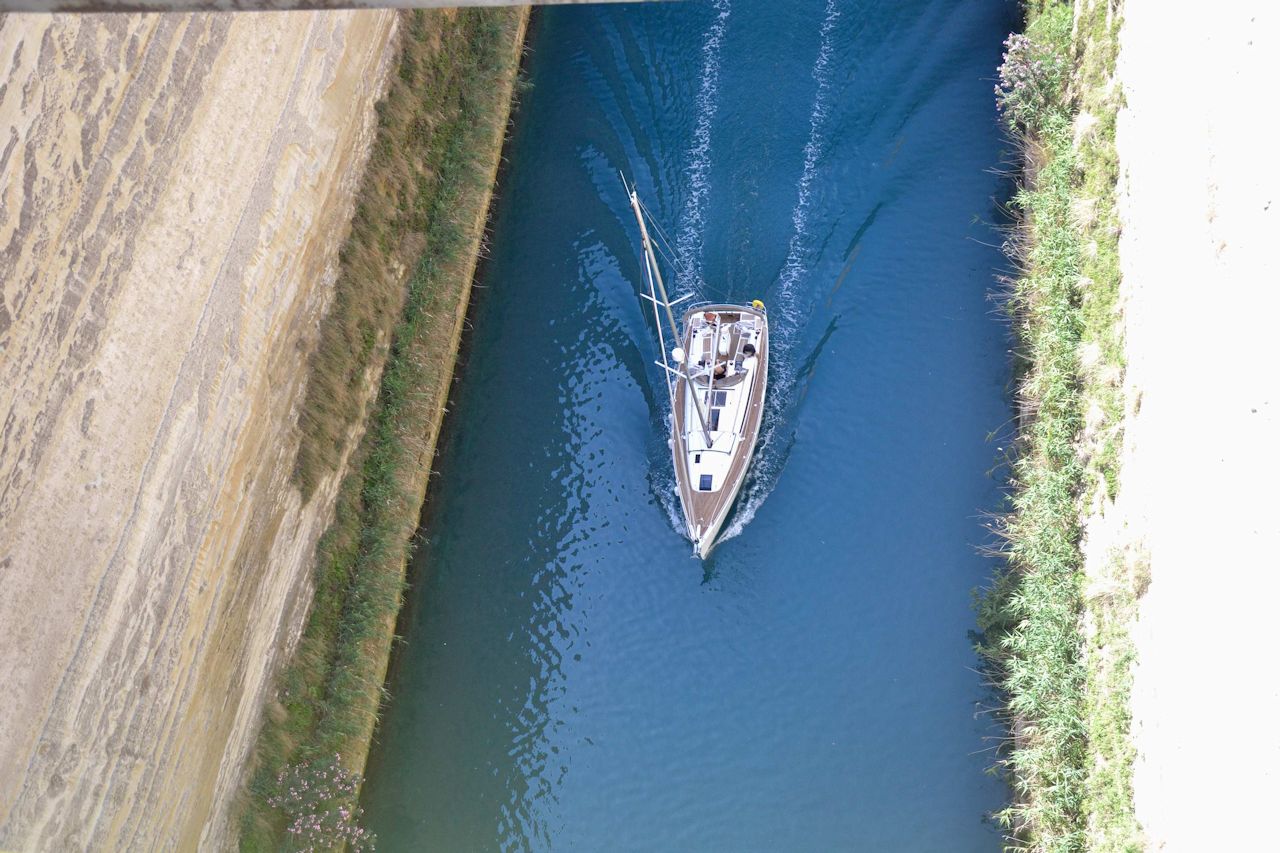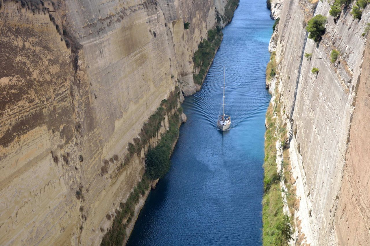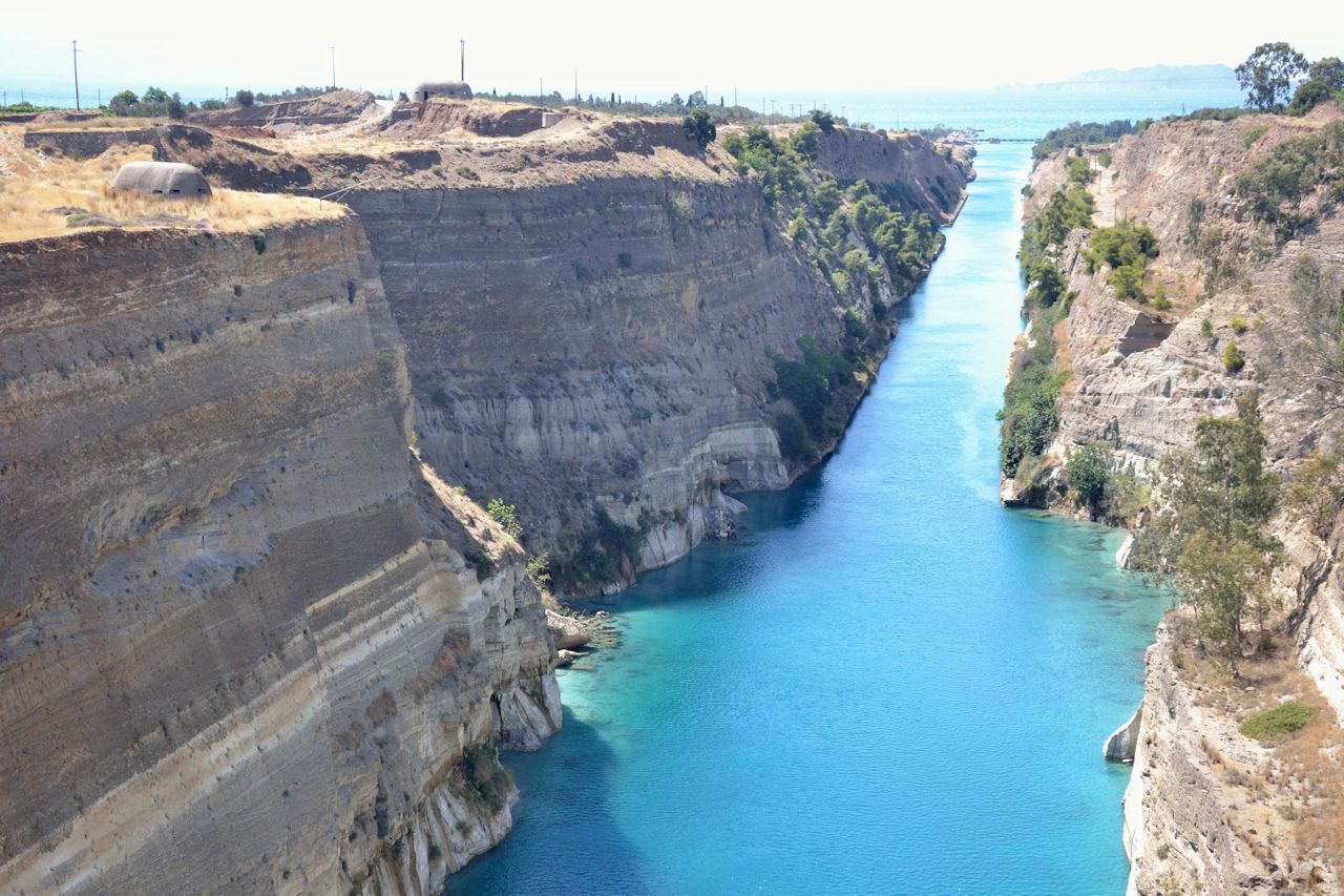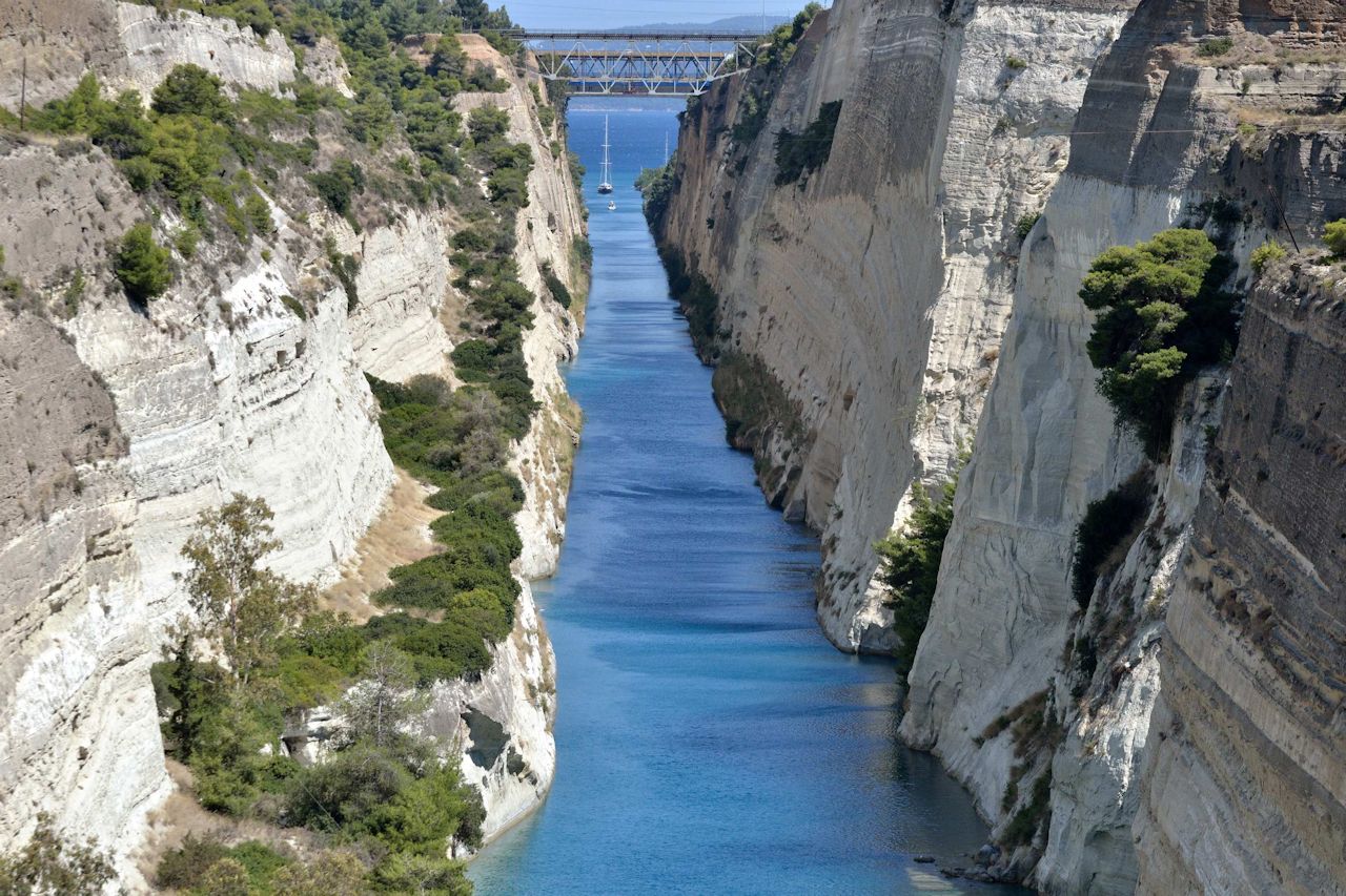 | Следующая остановка - Коринфский канал, прорубленный в известняке по прямой линии в конце 19-го века |