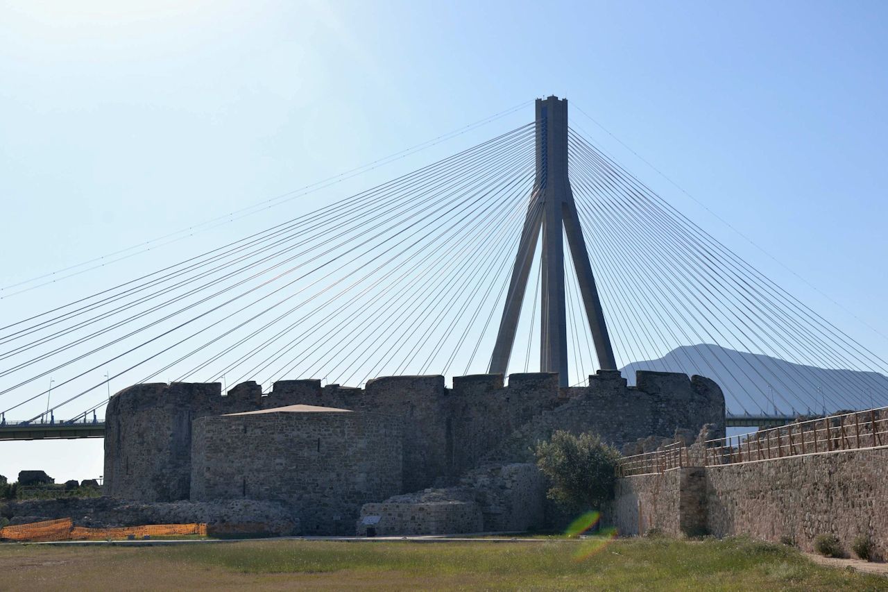 | За крепостью начинался двухкилометровый подвесной мост через коринфский залив. |