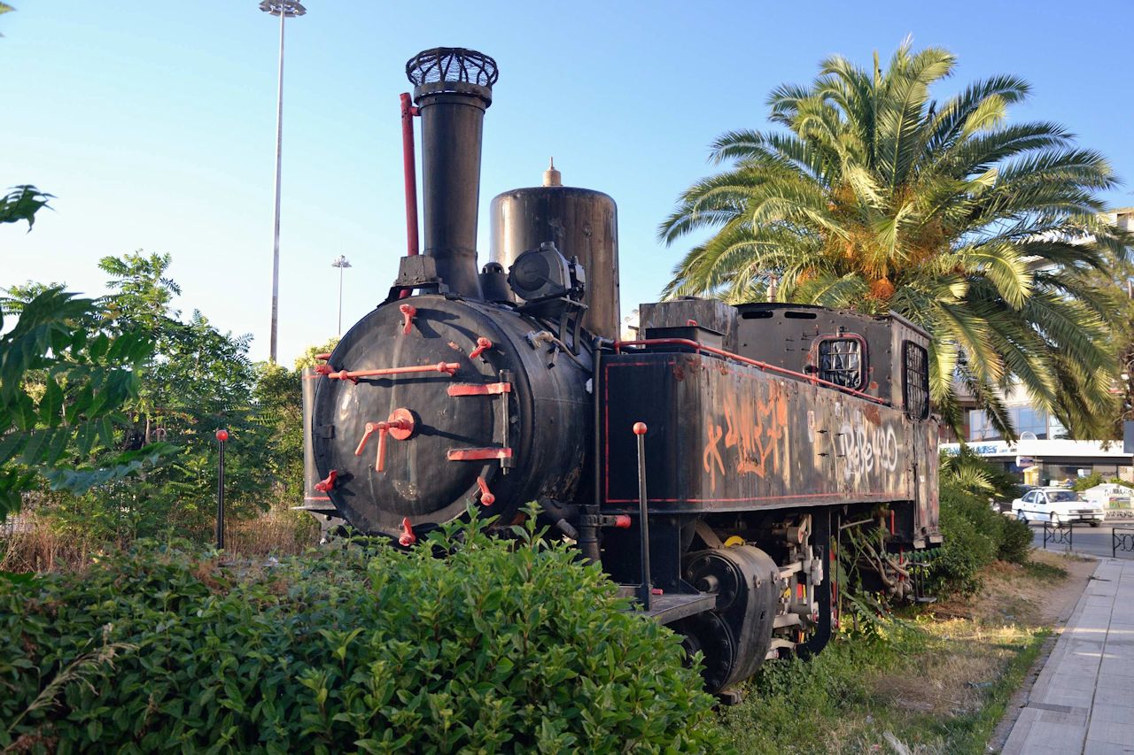 | Через некоторое время мы отыскали причал, откуда должен был отплывать паром на Кефалонию. Пока ждали паром, на железнодорожной станции около пристани нашли в кустах такой вот старинный паровозик постройки 1911 года |