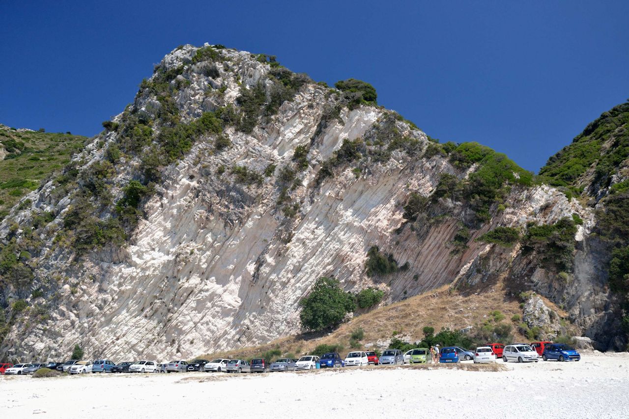 | На этом пляже снимали сцены взрыва мины в фильме "Мандолина капитана Корелли". |