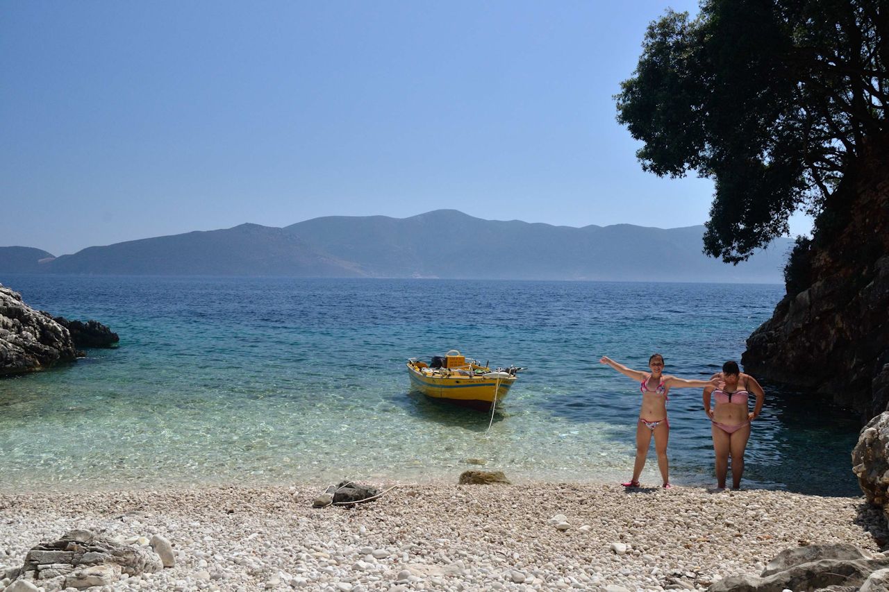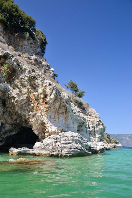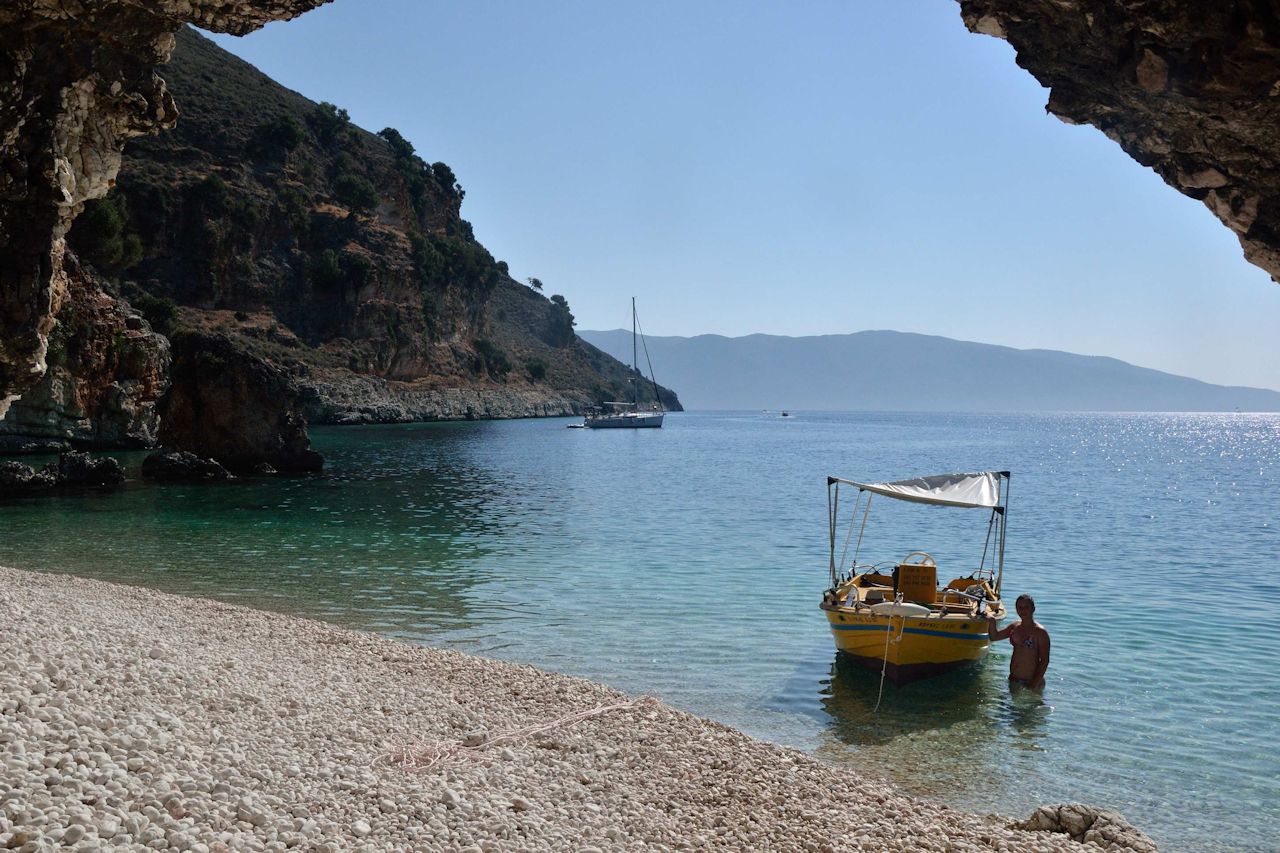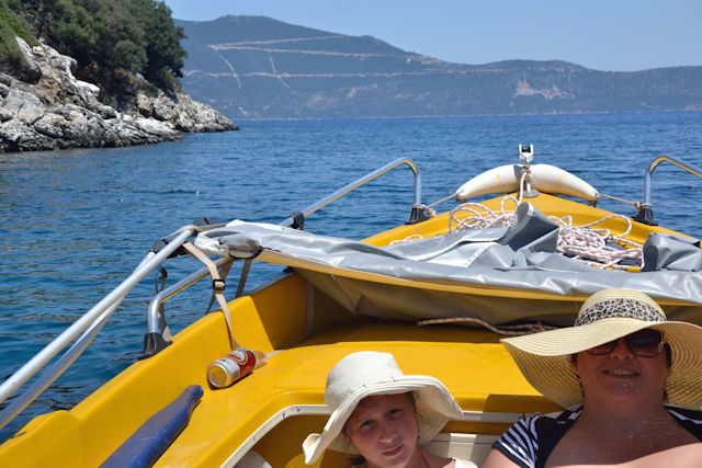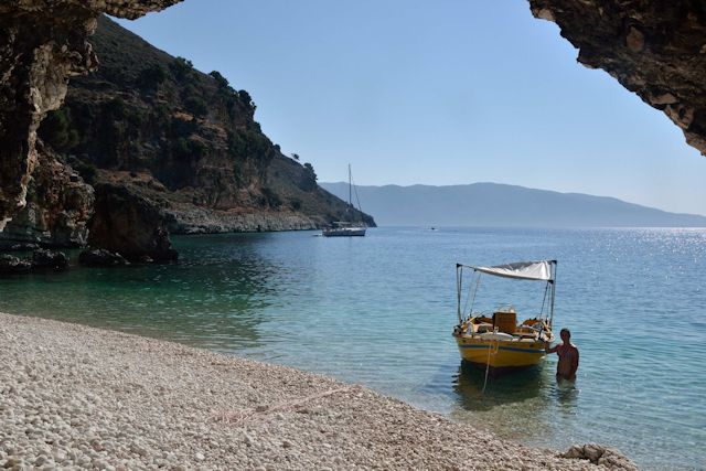 | В нескольких городках можно взять напрокат моторную лодку и отправитья исследовать маленькие пляжики, недоступные с берега. Мы взяли лодку в Ag. Efimia. |