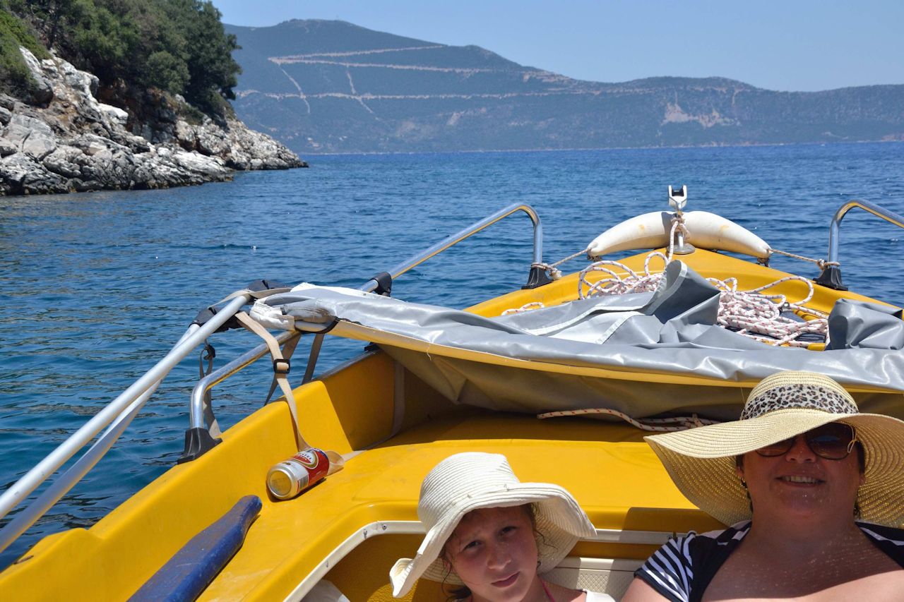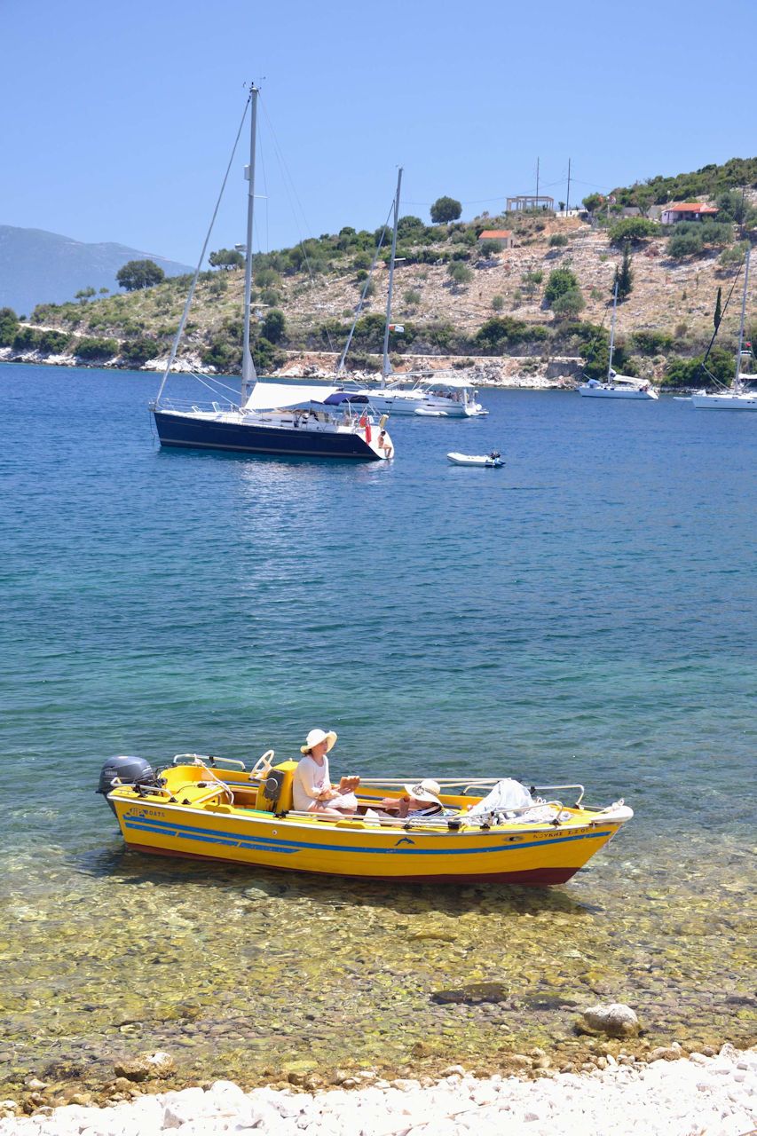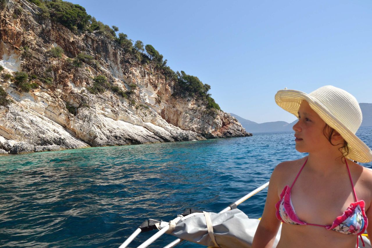 | В нескольких городках можно взять напрокат моторную лодку и отправитья исследовать маленькие пляжики, недоступные с берега. Мы взяли лодку в Ag. Efimia. |