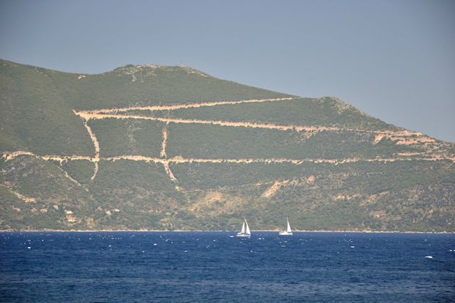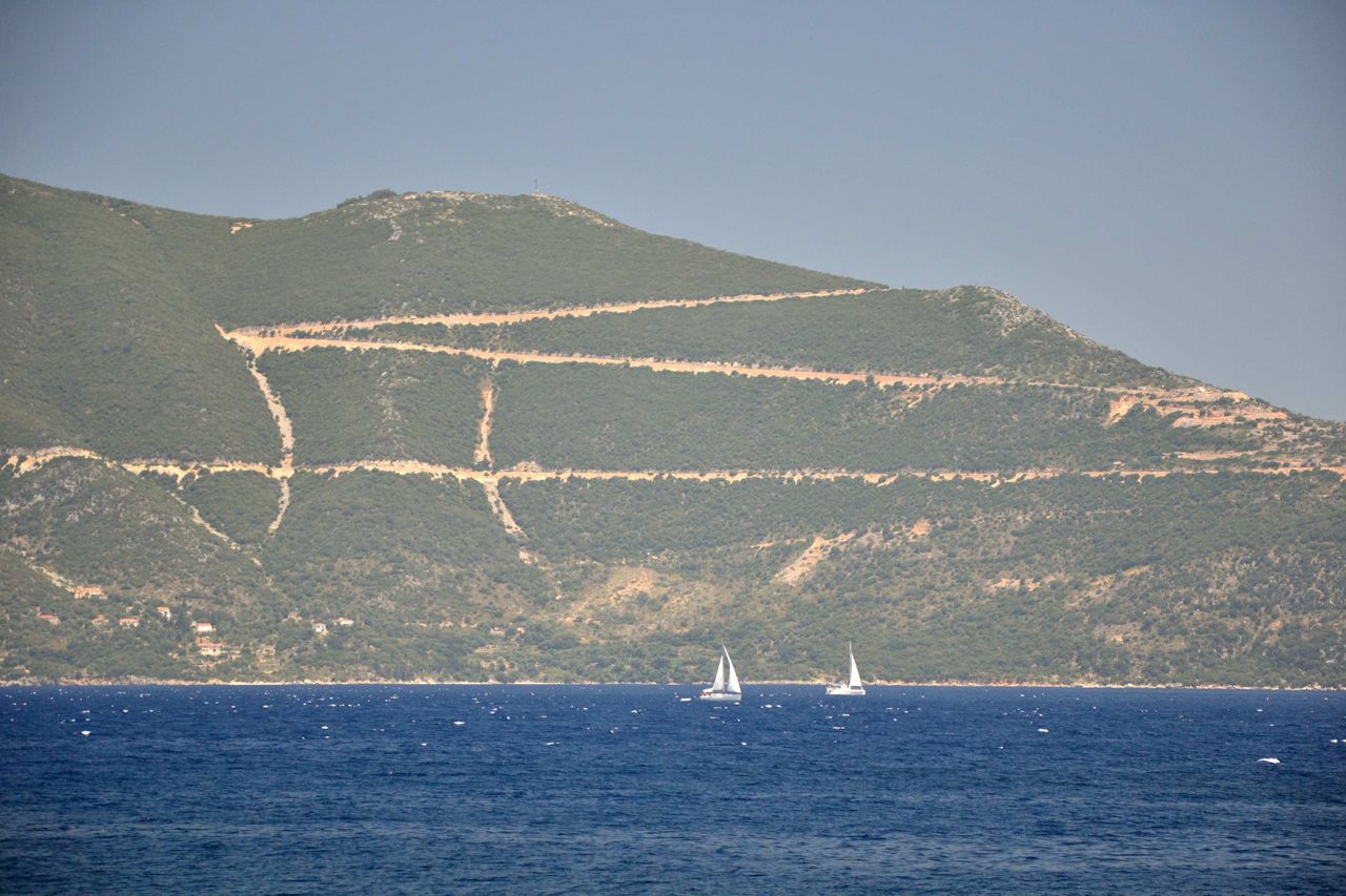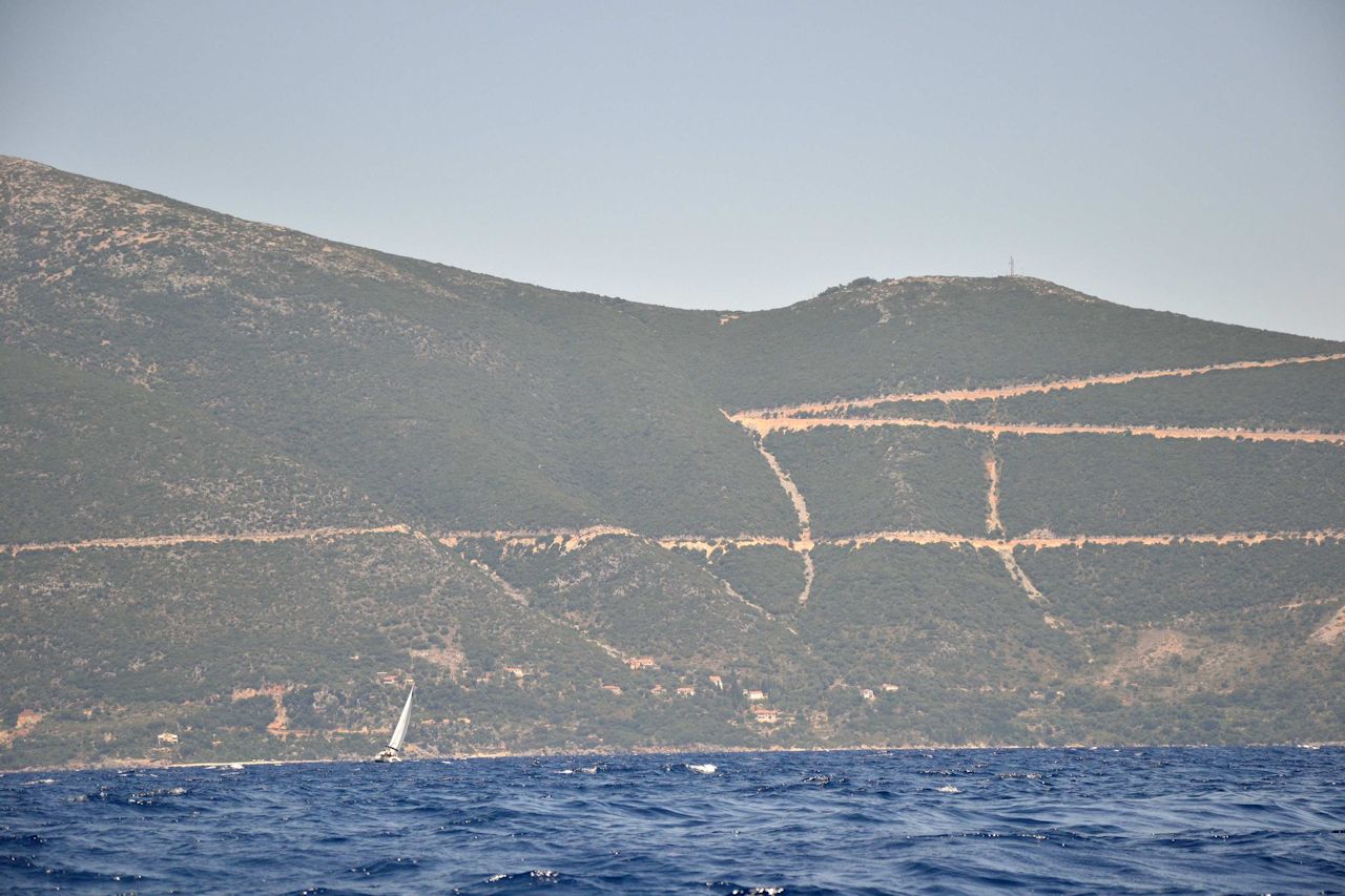 | Напротив - Итака с загадочным иероглифом на склонах |