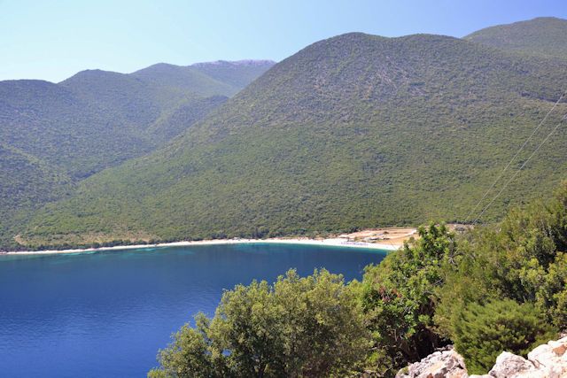 | Вид на залив Петани от таверны при гостинице на склоне (так себе таверна). Пляж прямо внизу под склоном, не виден. |
