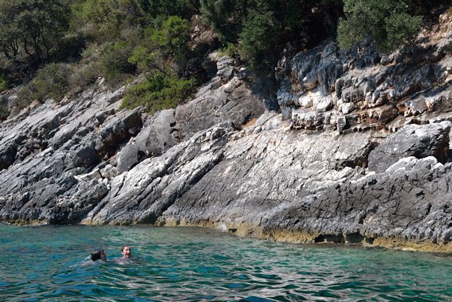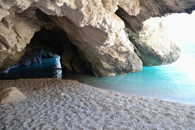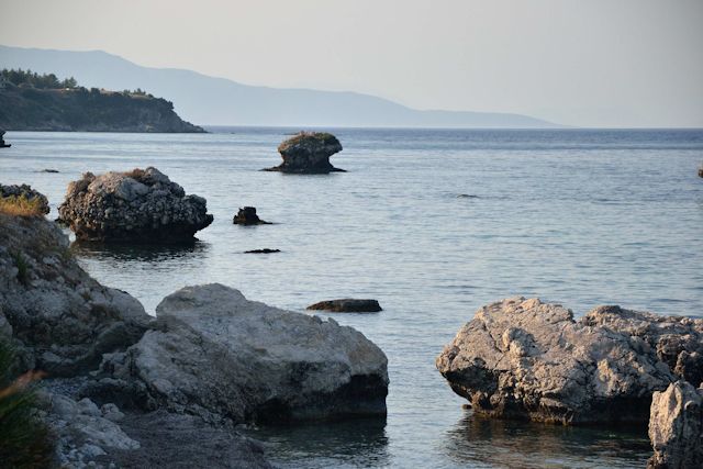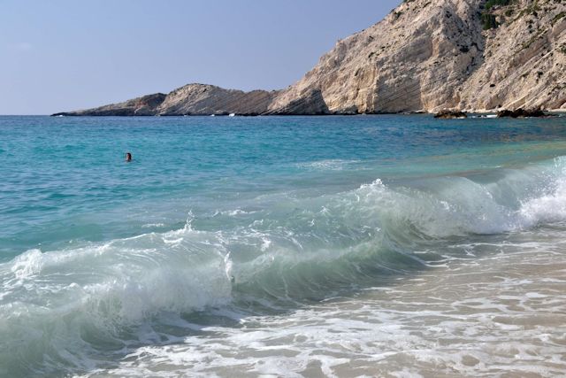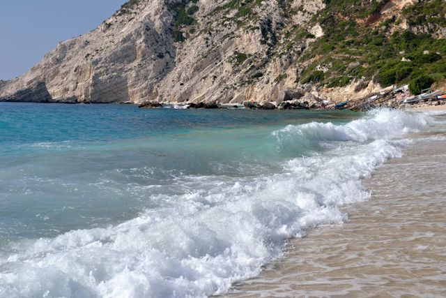 Пляжей на Кефалонии много и разнообразно. Есть песчаные и галечные, широкие с множеством дорог, ведущих к ним, и узкие с подходом только по серпантину или вообще столько с воды. Много очень красивых пляжей у подножия гор, зажатых между скалами. Только вот не хватало уютных скальных бухточек, как на западном побережье Закинтоса...