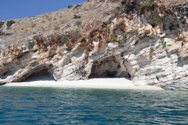 | Вдоль скалистого берега встречалось много небольших пляжиков с гротами. |
