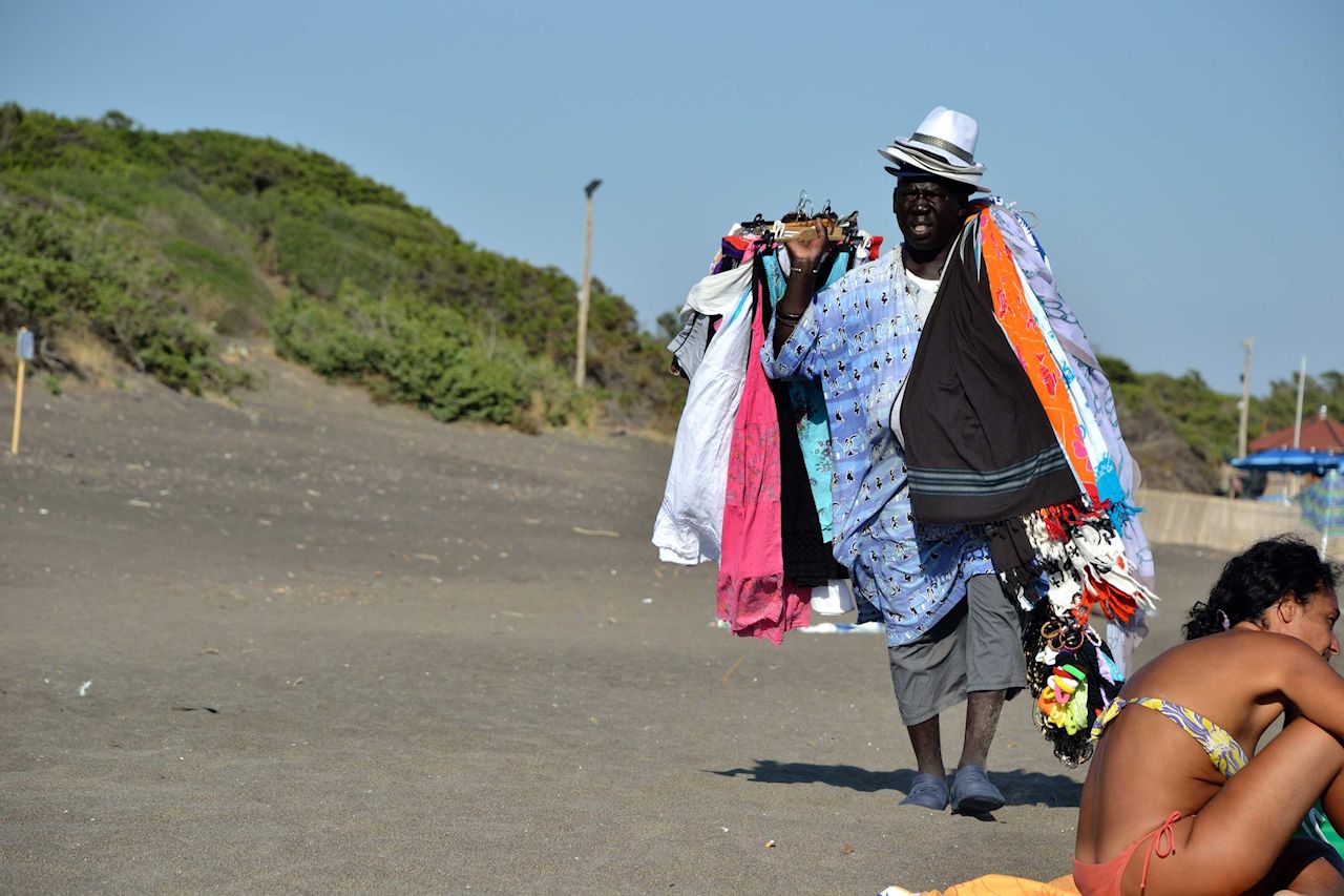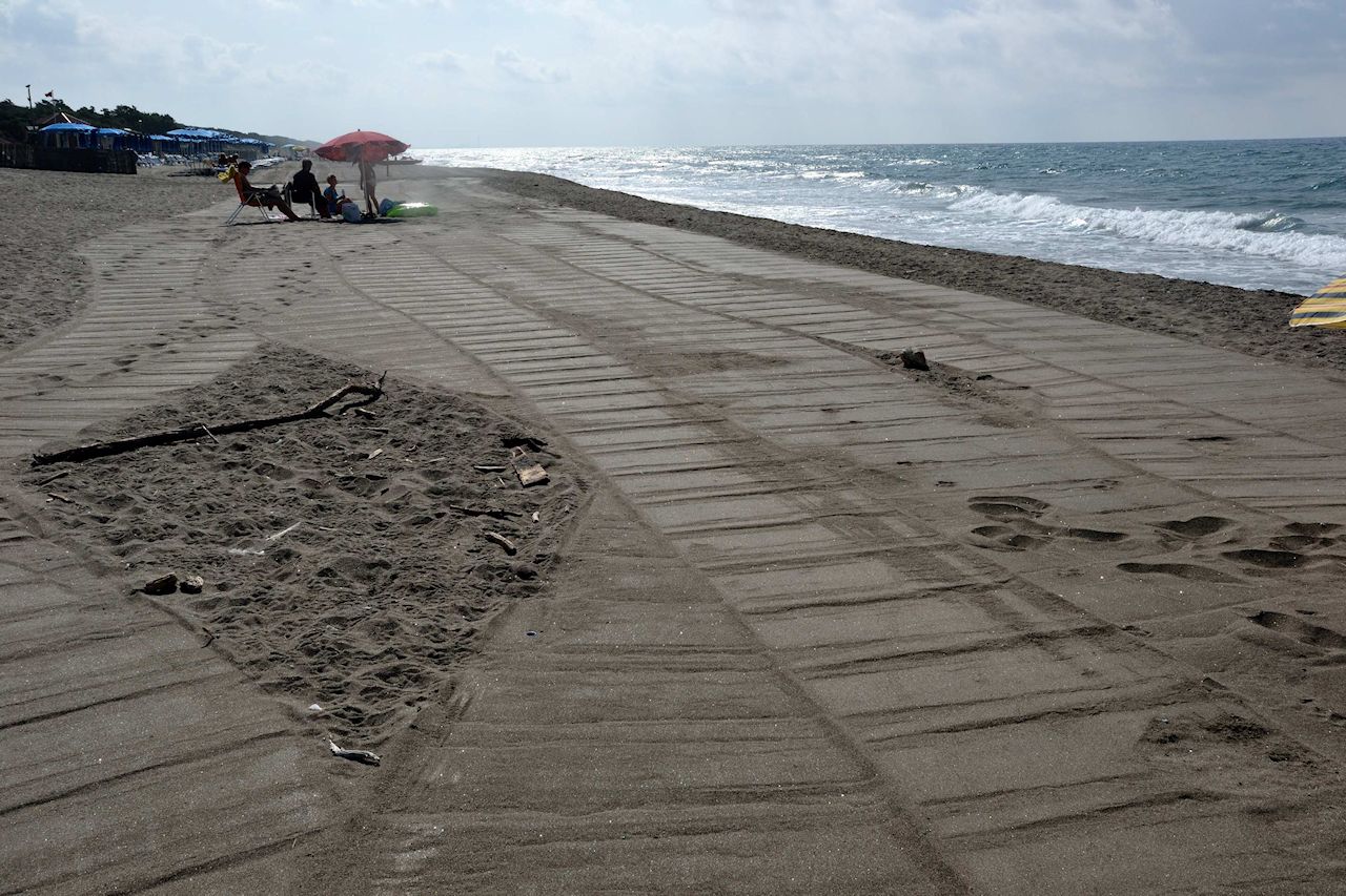 | По вечерам по берегу ездит специальный трактор, просеивающий песок от мусора и разравнивающий его. Крупный мусор трактор объезжает |