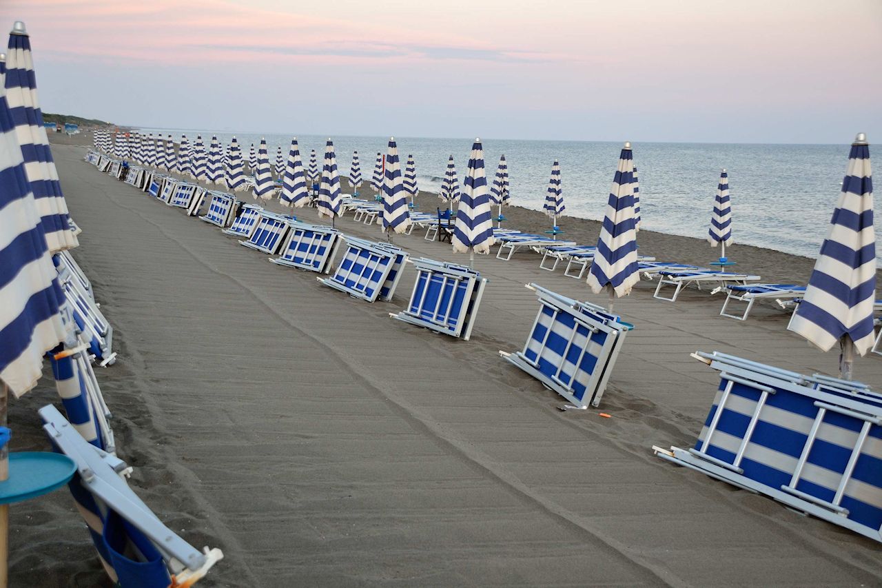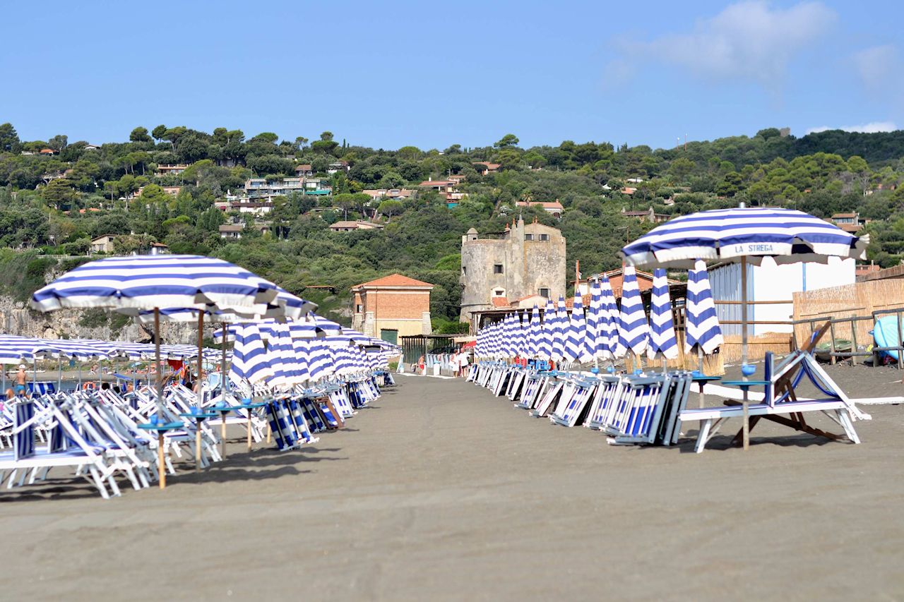| Ряды зонтиков и лежаков. Но если не хочется платить по 30 евров в день - можно отойти на 10 шагов и поставить свой зонтик |