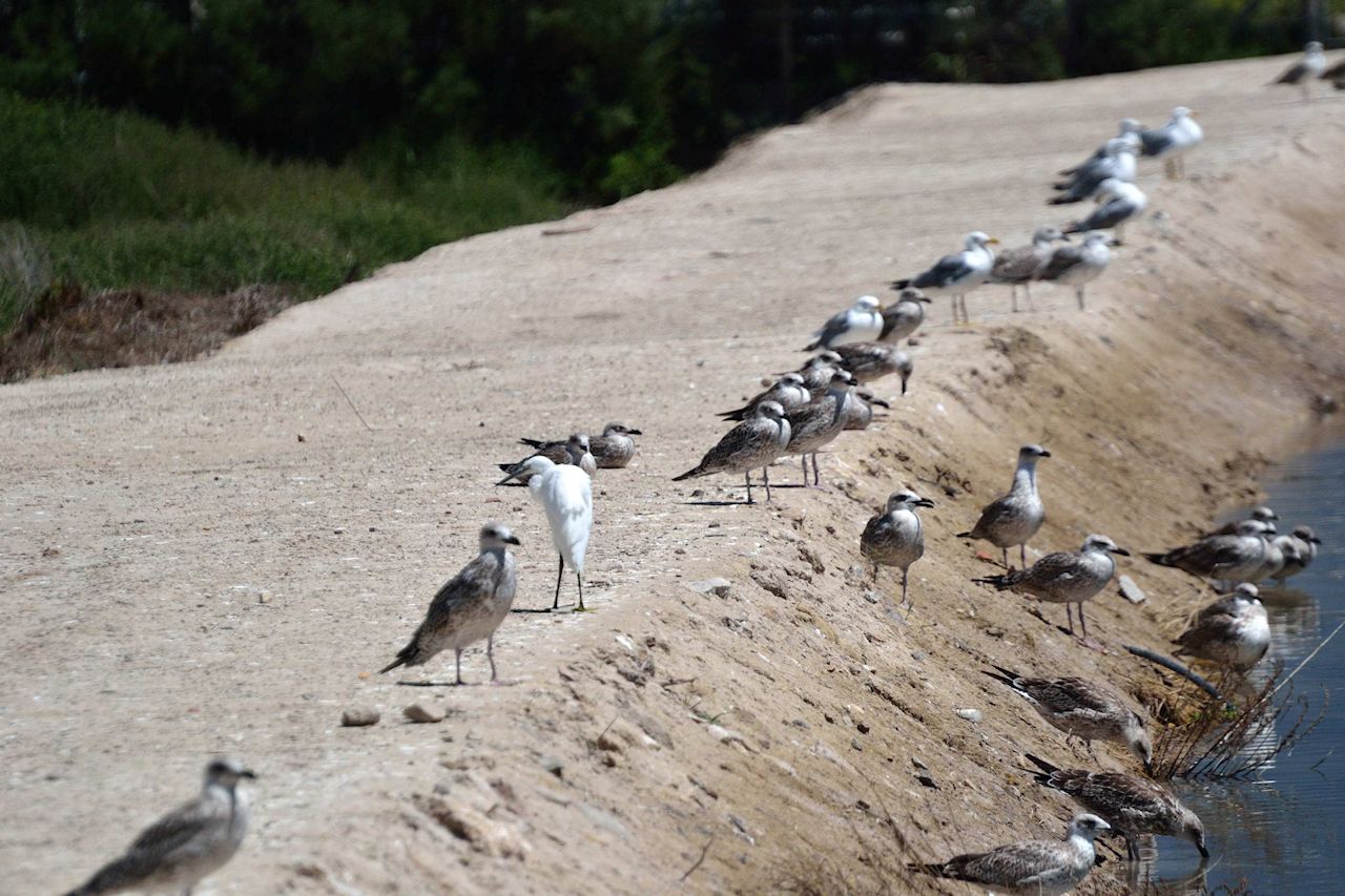 | По пути на пляж - канал, вытекающий из рыбоводческого хозяйства, на его берегах всегда чего-то ждут стаи чаек |