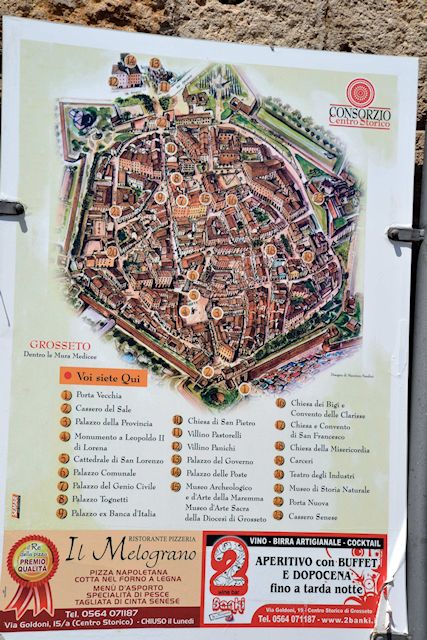 Гросетто - центр одноименной области, райцентр по нашему. Старая часть города окружена шестиугольной стеной, за ней множество памятников старины.