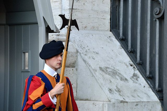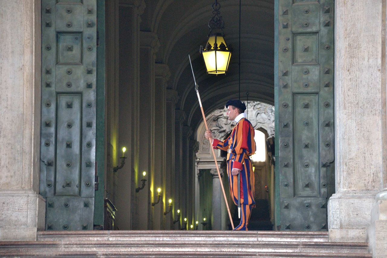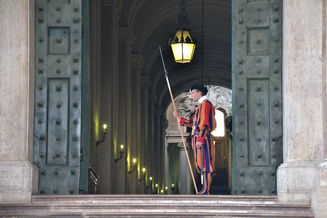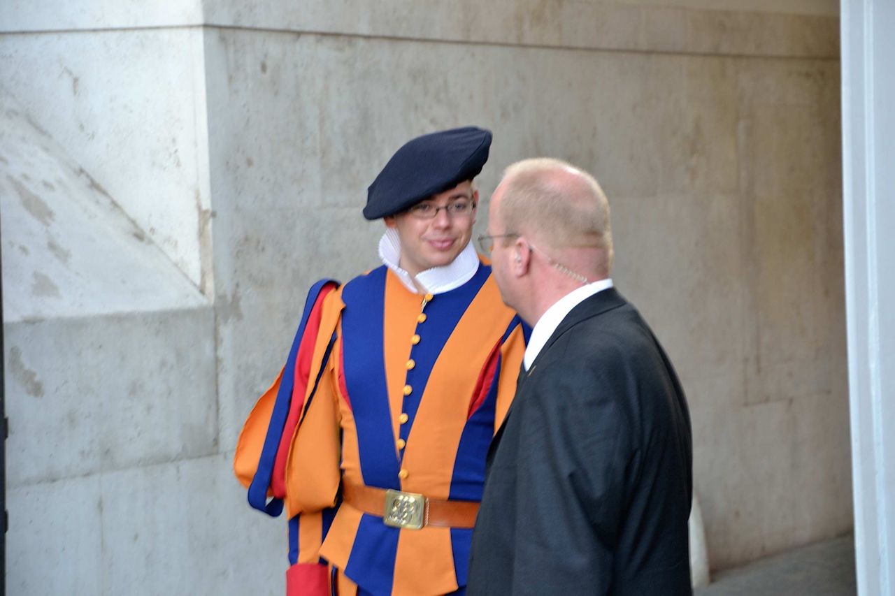| Очередь большая, но движется быстро. Вот мы уже около швейцарского охранника... |