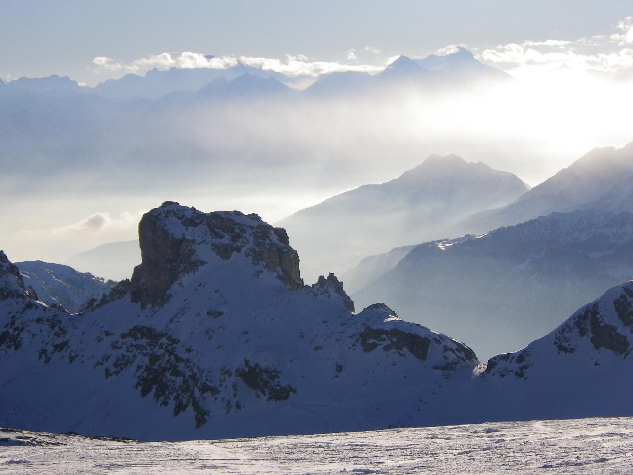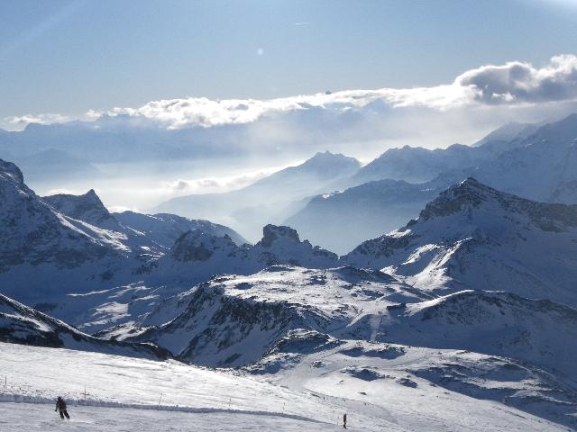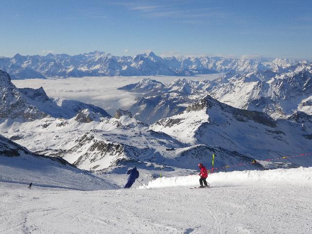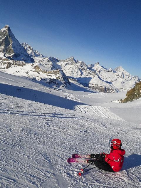Мы уже дважды были в Италии, и оба раза катались на лыжах в Доломитах, на Селле-Ронде. Это, конечно же, замечательное место с огромным количеством трасс, но на третий раз захотелось чего-нибудь нового. Червиния понравилась тем, что находилась под самым пиком Маттерхорн, которого мы уже видели издали из Швейцарии. Довольно забавной показалась идея кататься сразу "на две страны". Ну и количество трасс там вполне немаленькое, причем катание возможно даже в отсутствие снега, по леднику. Как оказалось, так думали не только мы, но и сам Медведев, приезжавший туда в июле 2010 года.