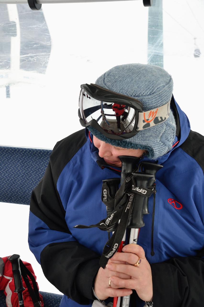 | Из-за сильного ветра подъемник часто останавливался, приходилось ждать в зависшей кабинке |