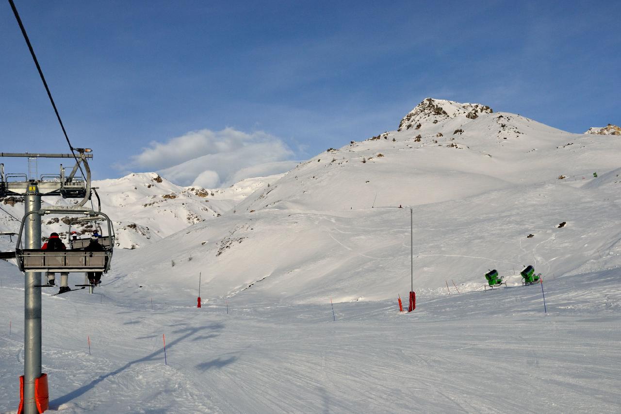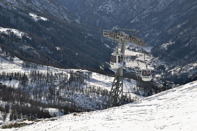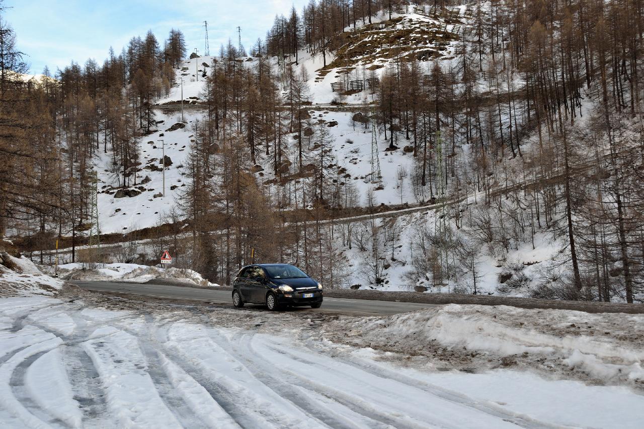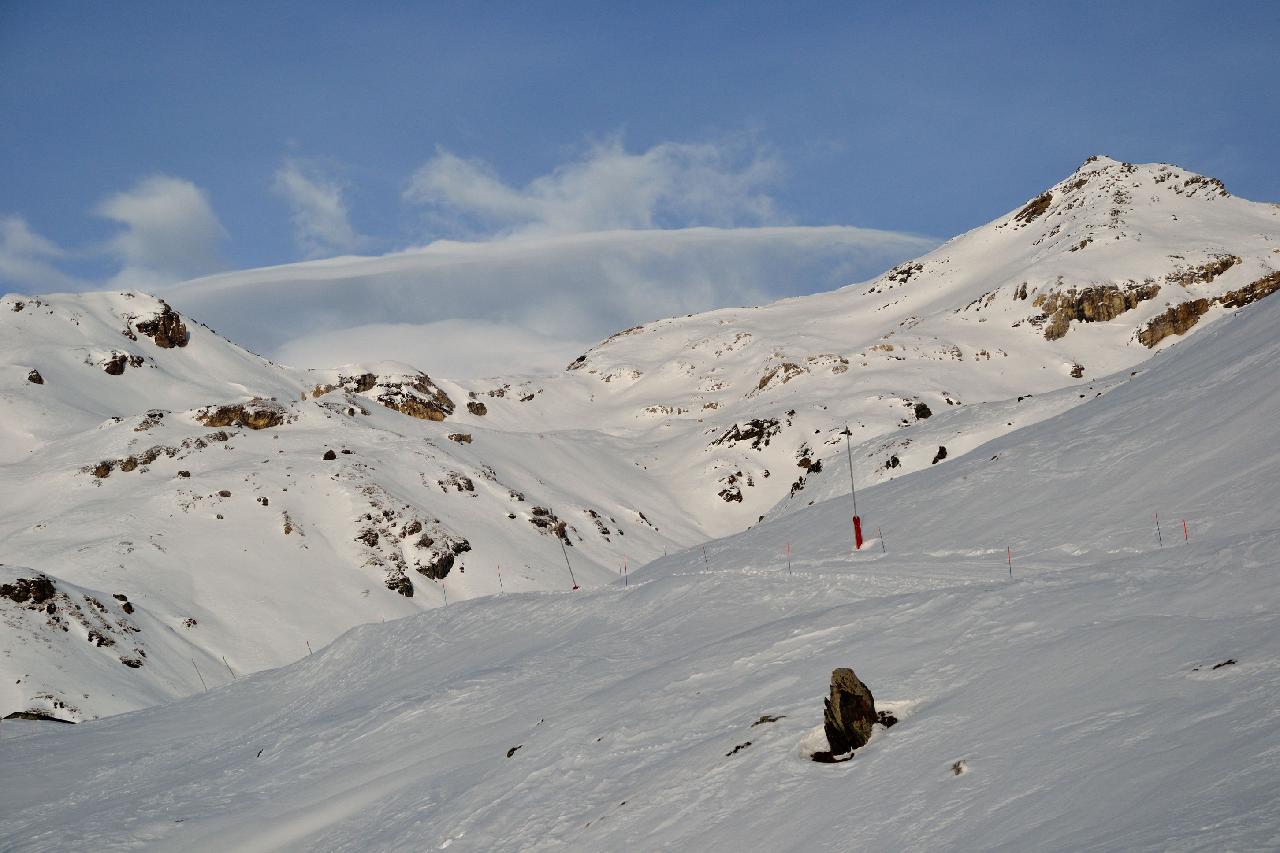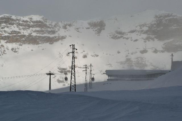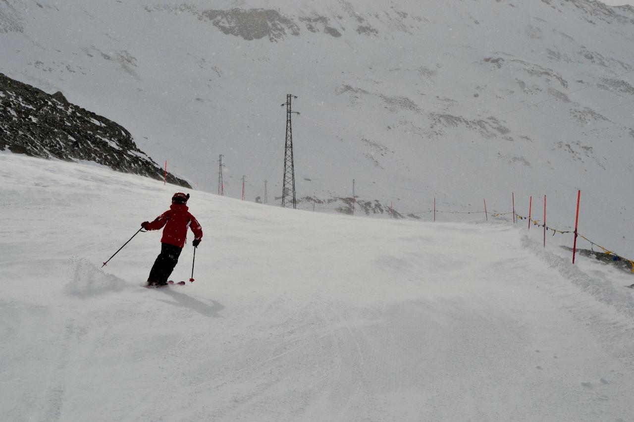 | На следующий день погода не изменилась - в Швейцарии закрыто все, в Италии открыты только самые нижние подъемники, зато в соседней долине открыто почти все. В хорошую погоду туда можно добраться на лыжах через самый верх, а в этот день мы поехали туда на машине |